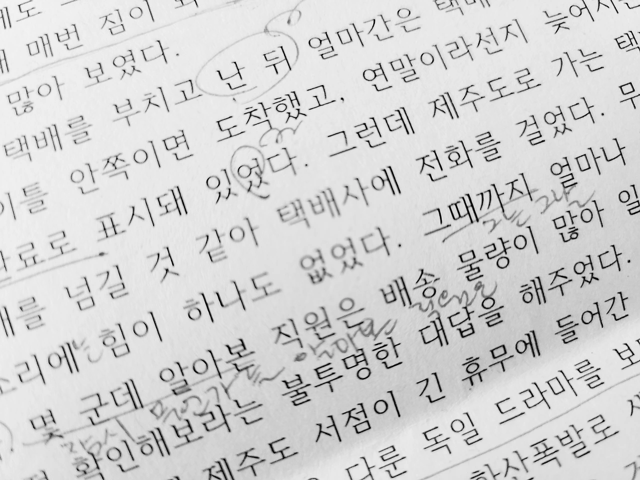 청탁 받은 원고를 넘기기 전에 출력해서 박수영¹에게 보여줬더니 다른 때와는 달리 오랫동안 집중해서 읽어주었다. 청탁 받은 원고이기 때문일 것이다. 원고에는 빨간 볼펜 자국이 우수수 나 있었다. 지금껏 많은 원고를 보여줬지만 이렇게 적극적으로 피드백을 받아보긴 처음이었다. 역시 청탁 받은 원고이기 때문일까 생각하고 있는데 박수영이 고개를 갸웃거리며 “이상하네”라고 말했다. 원고에 힘이 너무 많이 들어갔다는 거다. 잘 쓰고 싶어서 긴장한 건지, 부담감 같은 게 문장에 나타난다고 했다. 생각을 너무 많이 한 탓인지 복문도 많고, 문장이 길어지니 앞 뒤 호응도 안 되고, 불필요한 부사, 조사도 많고, 뭐도 많고, 뭐도……. 이렇게 지적을 많이 받아보기도 처음이었다.