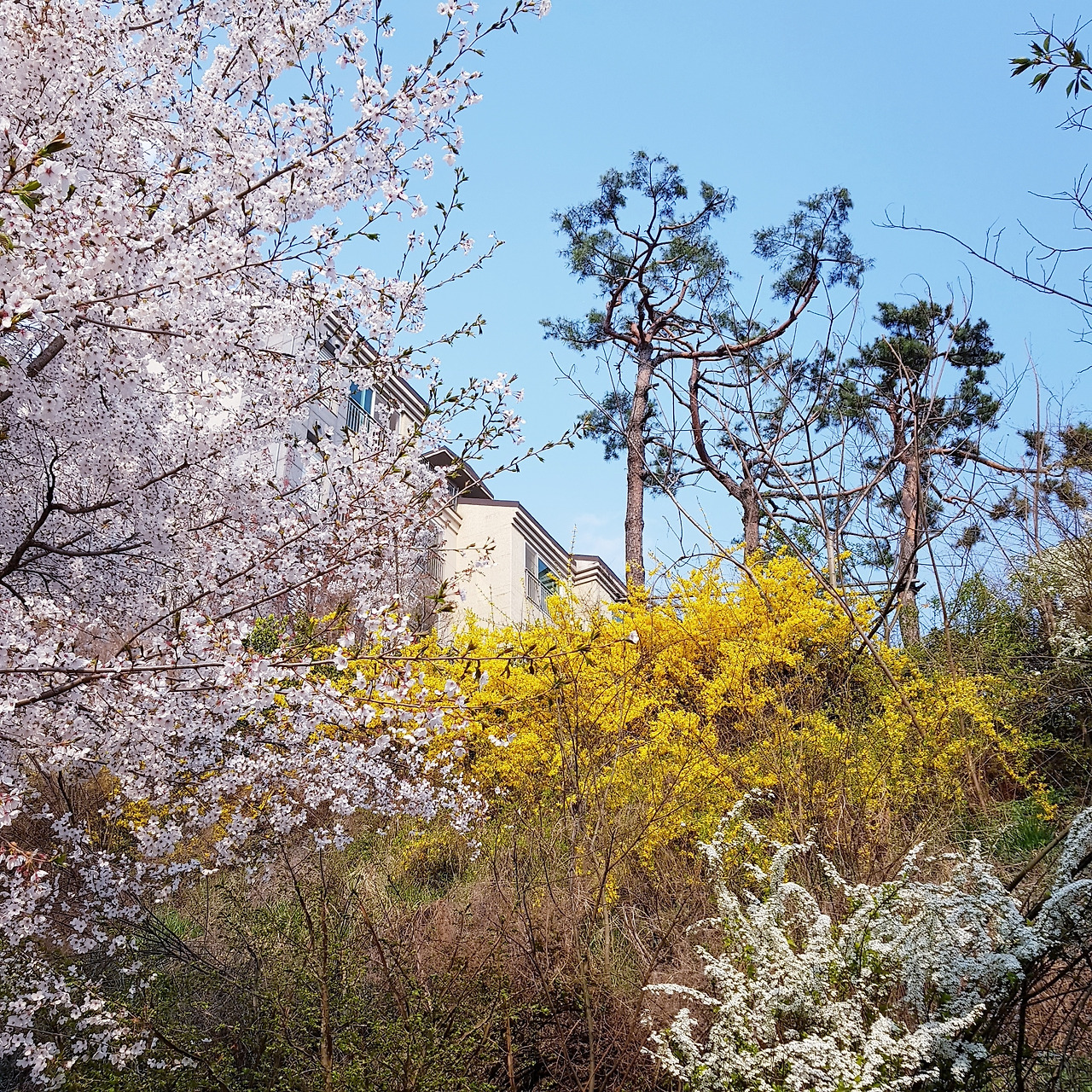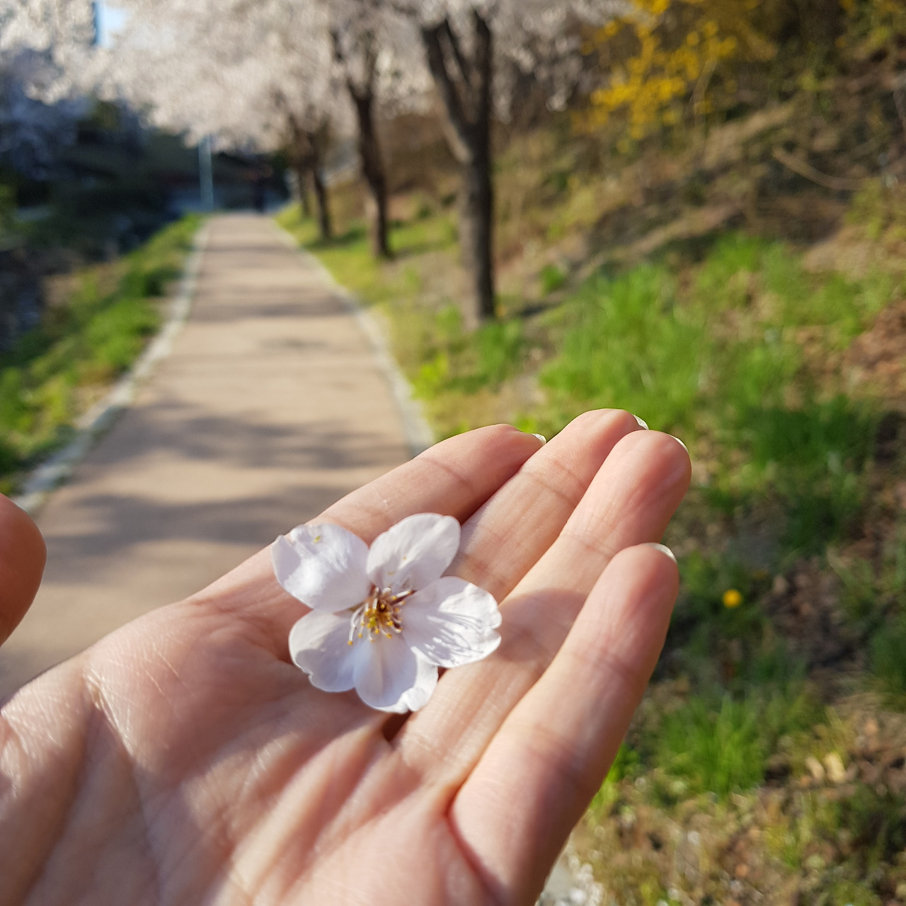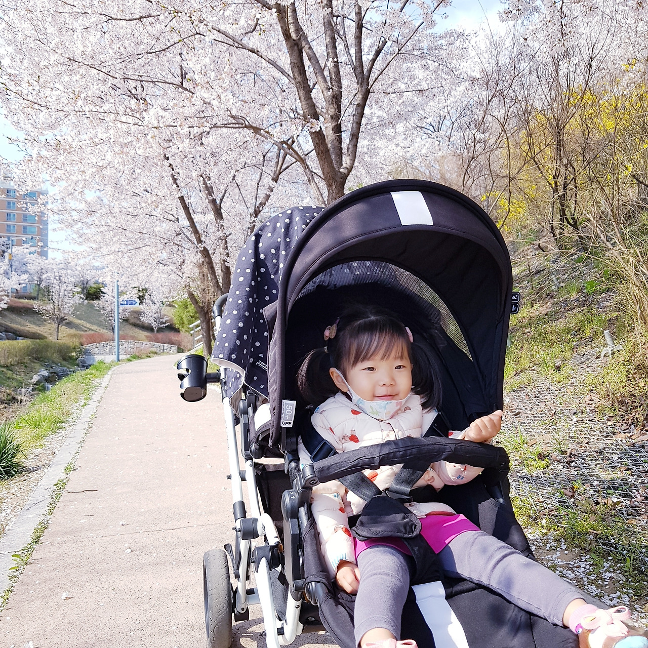 두 아이를 유모차에 태우고 산책에 나섰다. 얼마 전 지인에게 선물 받은 쌍둥이 유모차 덕분에 혼자 두 아이를 데리고 나들이가 가능해졌다. 다행히 집 주변이 산과 숲을 품은 곳이라 밖에 나오면 숨통이 트인다. 벚꽃이 활짝 핀 천 길을 따라 산책을 하는데 마침 바람이 불어 벚꽃비를 맞았다. 첫째는 좋아하며 꽃잎을 잡으려 한다. 둘째는 그저 뻥튀기를 열심히 먹고 있다. 울지만 않아도 감사하지. 돌아오는 길은 오르막 길이라 땀이 삐질 났지만, 파란 하늘에 분홍 꽃비, 이걸로 오늘은 행복!