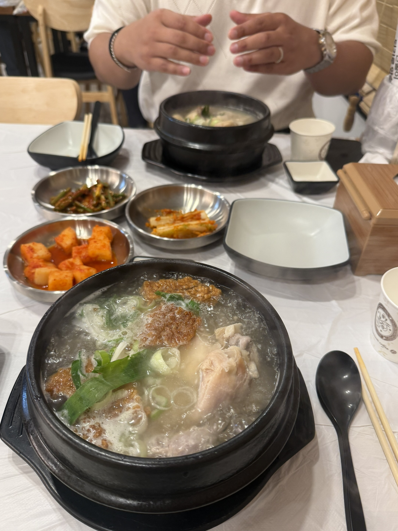 점심에도 삼계탕을 먹은 남편이지만 맛과 양이 형편없었다며 저녁엔 제대로 된 삼계탕을 먹으리라는 다짐을 내비쳤다. 안양 삼계탕, 의왕 삼계탕, 근처 식당을 찾아보다 마침내 후기가 믿음직스러운 가게를 발견했다. 10분 남짓의 대기시간을 갖고 우리 앞에 놓인 닭 한 마리를 맛있게 먹었다.
