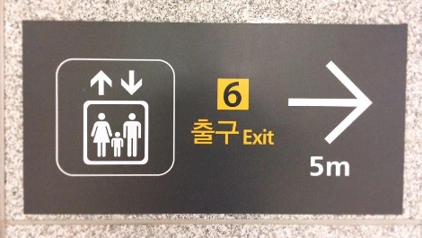 주변에도 물어봤지만 단 한 명도 이 안내문이 가리키는 바를 알아차리지 못했다. 역무원에게 물어보니, 이 안내문은 '6번 출구에서 5m 더 가면 엘리베이터가 있다'라고 한다.