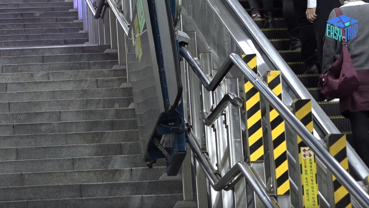 휠체어에 탄 채 탑승이 가능한 에스컬레이터(사진 제공: 이승일님)