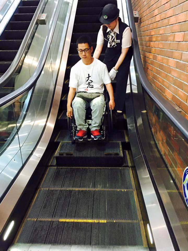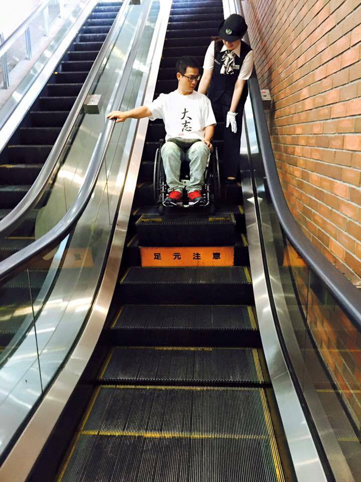 휠체어로 에스컬레이터를 이용한다는 것을 상상해본 적이 있는가? 적어도 나는 없었다. 이 사진을 보면서 좋은 아이디어라고 감탄했고 '참 많은 연구를 했겠구나!' 라는 생각이 들었다. 에스컬레이터는 계단 형태로 되어 있기 때문에 휠체어나 유아차를 가지고 타기 어렵다. 한국의 에스컬레이터 앞에는 유아차를 가지고 타지 말라는 안내까지 붙어 있다. 그런데 가볍게 들 수 있는 유아차도 아니고 휠체어라니. 어떻게 이런 생각을 했을까?