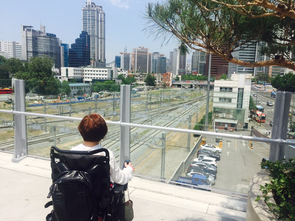 사실 서울로는 여러 가지로 신경을 쓴 흔적이 보입니다. 공연을 즐길 수 있는 공간, 방방 놀이터, 서울로 전시관, 정원 교실, 공중 자연쉼터 등의 즐길거리와 먹거리를 판매하는 공간도 있습니다. 이렇게 많은 편의시설이 서울로 에 들어가 있다니 조금 신기하기도 했지만 이 역시 장애인들에게도 모두 열려 있지는 않습니다.