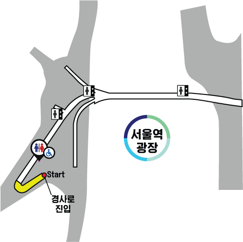 어느 길이나 마찬가지지만 서울로 역시 휠체어로 진입할 수 있는 경사로나 엘리베이터가 있는지 찾아봤습니다. 다양한 출입구로 서울로 에 진입할 수 있지만, 지역 주민이 아니라면 어디서 오느냐가 중요하겠죠?
