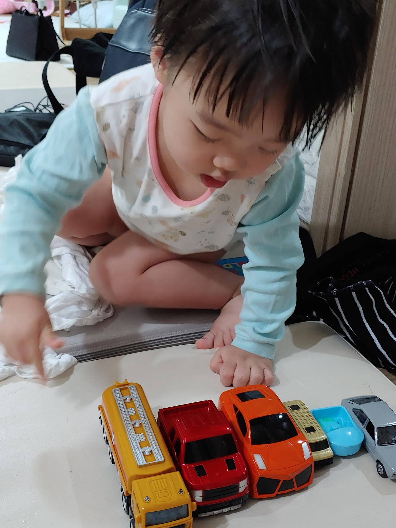 아이는 수많은 차더미 사이에서도 어떤 것을 누가 사주었는지 정확하게 구분한다.