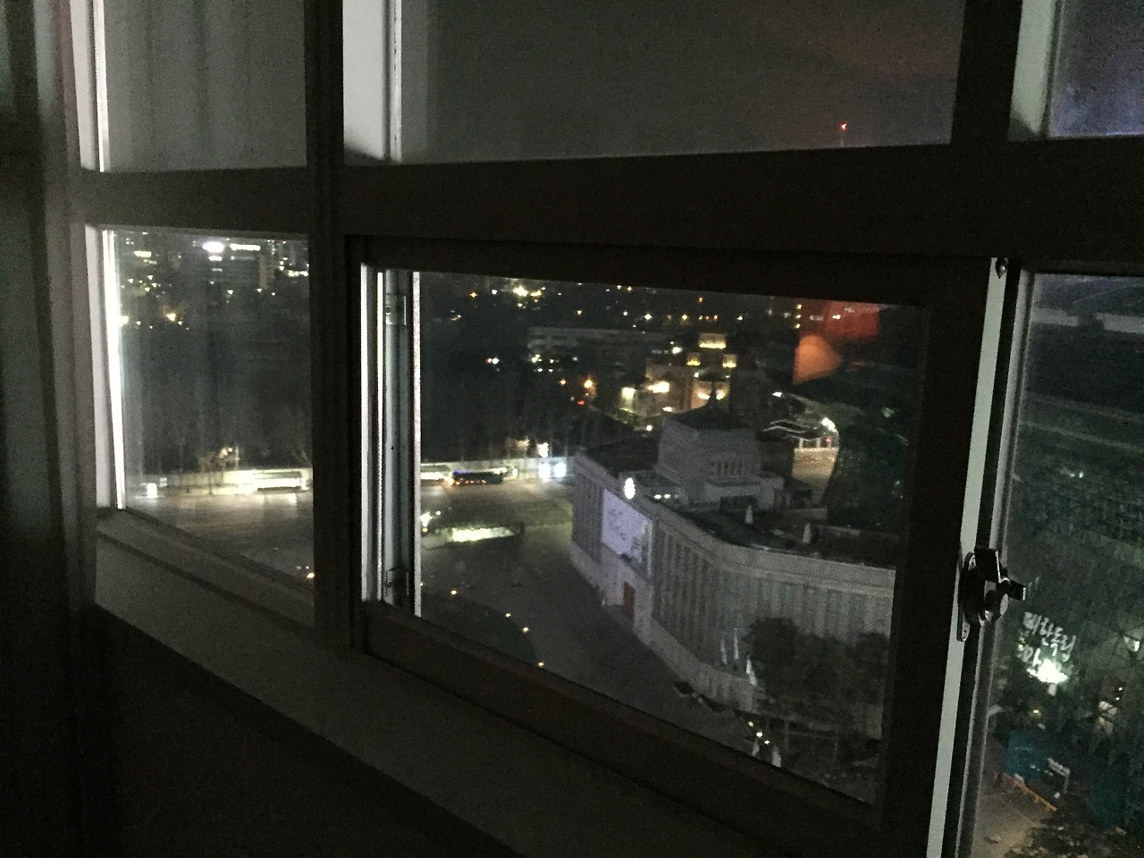 창가의 커튼을 살짝 걷어내고 밖을 내다보니 흡사 우주선을 연상케 하는 신 서울시청사가 당장 눈에 들어온다. 그 앞에는 없애자 남기자 수년간 옥신각신하여 몸뚱이의 일부만 살아남은 구 서울시청사가 찰싹 몸을 맞대고 있다. 잔디밭에는 수백 명의 군중이 모여 음악에 맞춰 '투쟁'을 외친다.