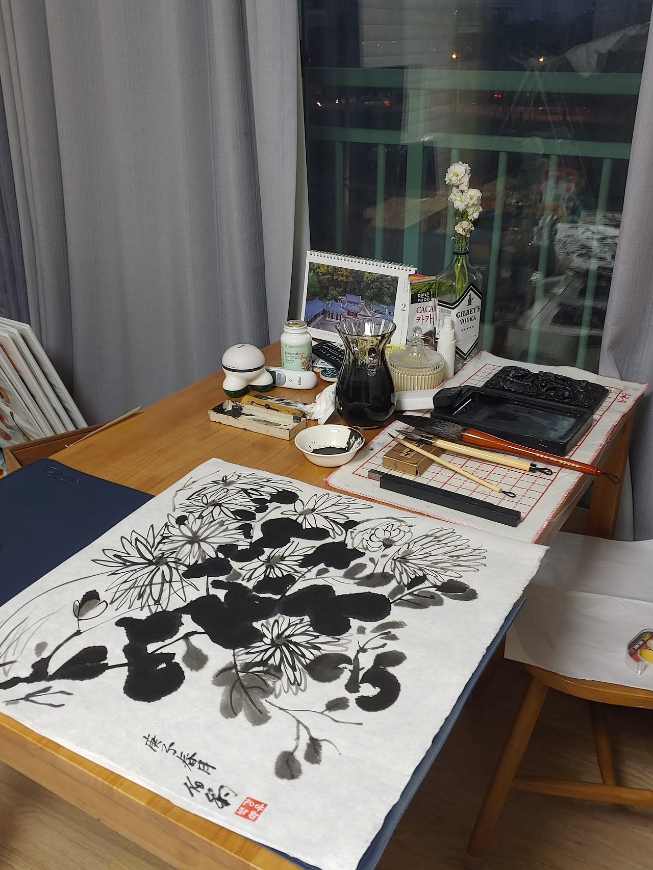 다시 그림을 찾아 들어왔다. 글씨도 쓴다. 무엇을 그리던 무엇을 쓰던 다 내 마음이다. 아내는 학원을 다녀보면 어떻겠냐 물어 나는 누구에게 배우고 싶은 생각이 현재로선 없고 앞으로도 없을 것 같다고 했다. 나는 내 멋을 찾고 싶지 누구의 멋을 따라하고 싶진 않다. 그래서 개멋이라도 내 멋을 찾아보려고 한다. 그래서 이른 새벽이면 종종 일어나 먹을 간다.