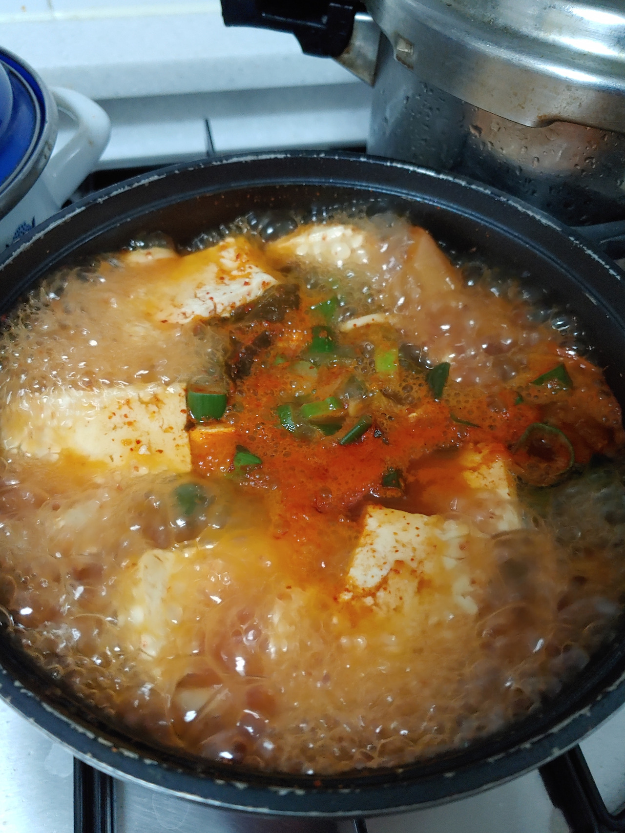 맛있다고? 나도 먹어보니 이런 제법 맛있다. 마지막으로 두부를 썰어 넣었다. 39년 만의 최초 요리였다.