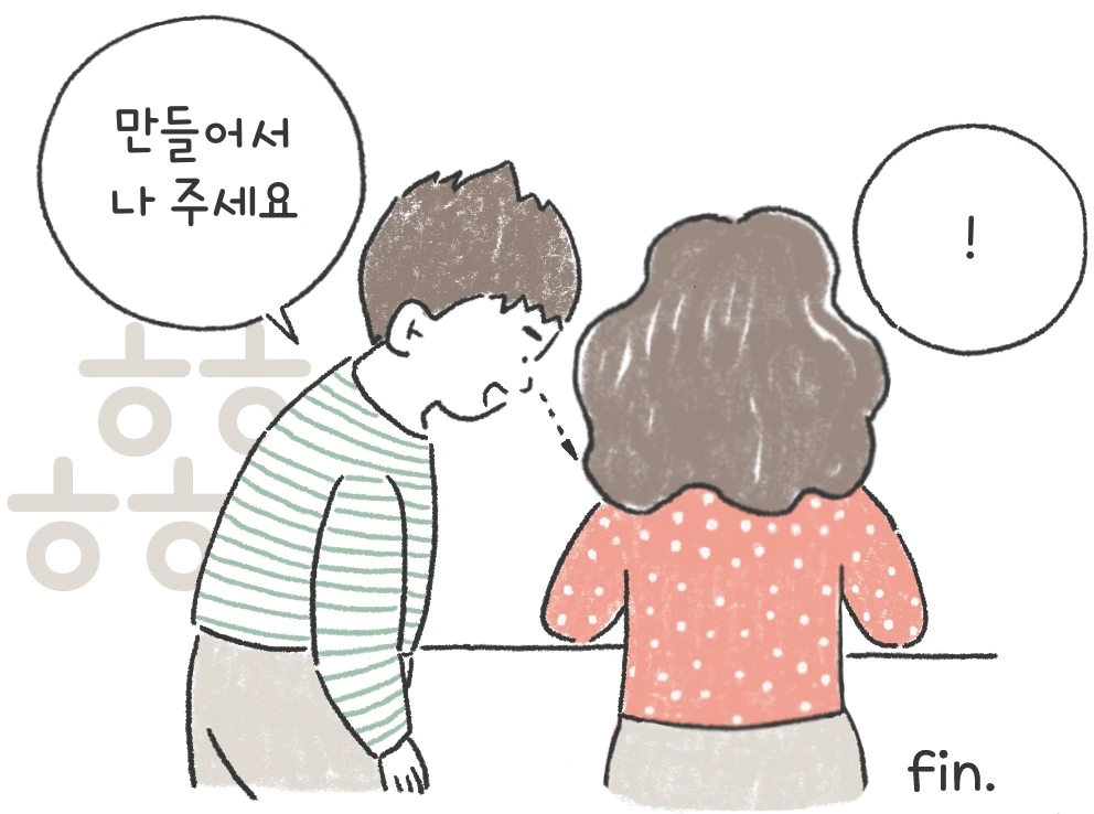막상 그림으로 옮기고 나니 '이 게 아닌데...'라는 아쉬움이 들기도 했습니다. 혼자만의 공상 같은 이야기처럼 느껴질 땐, 신이 나서 그리던 마음도 쑥 들어가 버리곤 했어요. 대단한 걸 이루고 싶었던 나를 인정하고 나니 가벼워졌습니다. 그림이 마음에 들지 않아도, 컷 구성이 어색하게 끝이 나도, 오해할 것 같은 기분에 싸한 마음이 들어도, 유머 센스 없이 이렇게 그린 이야기를 누가 읽어주기나 할까 싶은 마음이 들어도, 일단 밀고 나갈 힘이 생겼습니다. 부끄러움을 이길 줄 몰랐던 제가 부끄러움을 견디는 법을 배우며 한 장 한 장 채울 수 있었습니다.