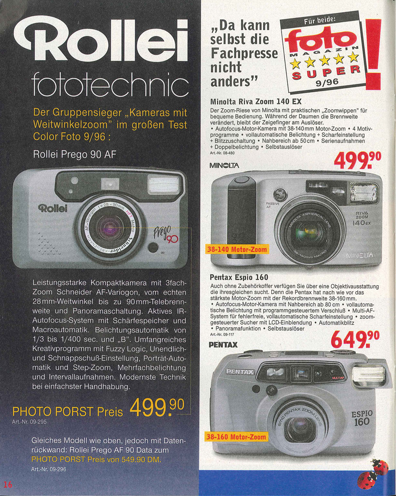 롤라이 프레고 시리즈 컴팩트 카메라들의 한계를 극복한 SLR카메라와 거의 동일한 성능과 더 비싼 가격을 갖춘 컴팩트의 끝판왕인 Rollei QZ (35W/T)시리즈 같은 애매한 전문가형(?) 황금색 카메라도 큰 인기를 얻지 못했지만 출시되었고 의외로 이 기종은 오히려 콘탁스 사의 G1, G2와 가족처럼 느껴진다.(순간 QZ에 혹 하여 장터를 뒤지다가도 결국 최종적인 선택은 결국 G시리즈가 될 것 같은 느낌이다. G의 홍보대사인가?) 이 모델은 아예 상판에 포르쉐디자인이라고 자랑스럽게(한편 촌스럽게) 새겨져 있다. 이후에는 Rollei 35RF(2002년 발매)라는 Bessa R2기반의 코시나사 가 생산한 라이카 M마운트를 단 족보 없는 모델이 잠깐 등장하였다 사라졌다.