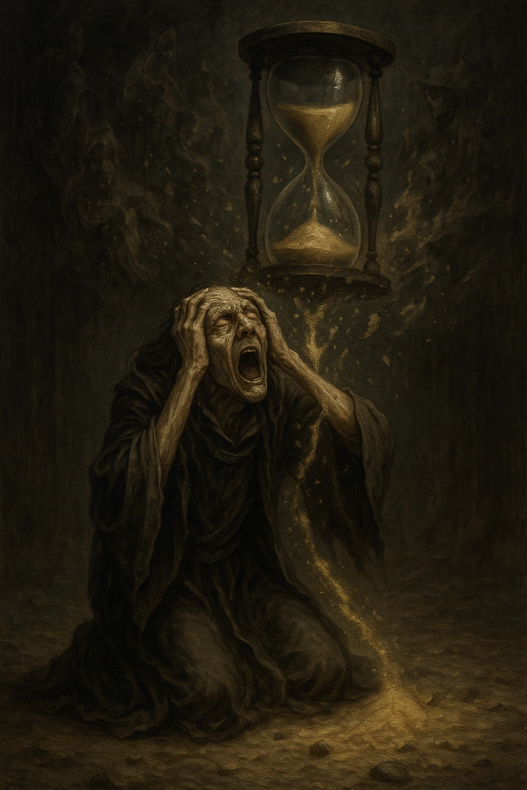 (철학자는 조용히 모래시계를 거두며 속삭인다.)