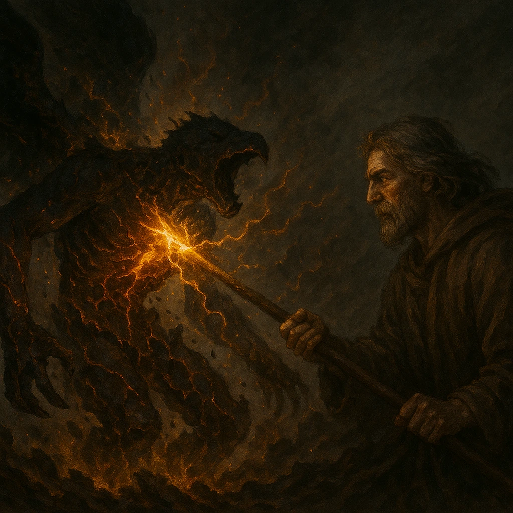 철학자: 아몬, 이 창은 네 분노의 가면을 찌를 것이다. 분노로 자신을 세우려는 자는 결국 이 창 앞에서 무너진다.