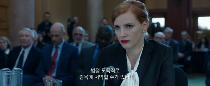 1) 이 외국어 영화의 무지막지하게 많은 대사(라기보다는 자막)들을 온전히 따라 읽고 스텝을 따르는 것은 쉽지 않았다. 너무 많은데 또 빠르다. 미국 실정법의 역사와 정치적 이슈를 온전히 자막으로만 읽고 이해해야 하는 외국의 관객들에게 이 영화의 텍스트는 너무 빨리 지나간다. 의미 전달이라는 목적은 지키고 번역을 조금 간결하게 했더라면 더 좋았을 것 같다.