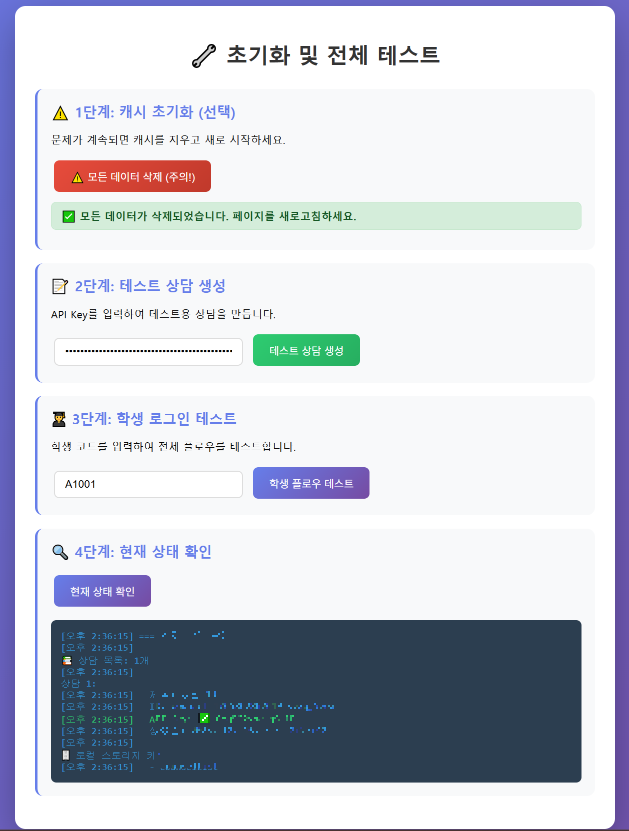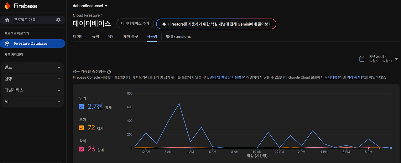 하지만 결국 문제 해결의 키는 클로드의 관제탑이 아니라 DB연동이었다! DB연동을 하지 않은 건 모델하우스에 불과했던 것이다. 클로드의 소름 돋는 분석과 테스터는 DB가 없는 가정하에서 돌아가고 있을 뿐이었다. 디버깅용 화면에서 백번 테스트해도 풀리지 않던 난제는 파이어베이스 연동으로 말끔히 해결되었다. 모델하우스를 떠나 진정한 내 집 마련! '상담 목록 관리'나 '성찰 내용 저장 및 동기화'와 같은 핵심 기능을 안정적으로 운영하기 위해서 DB 연동은 반드시 필요한 과정이었다.