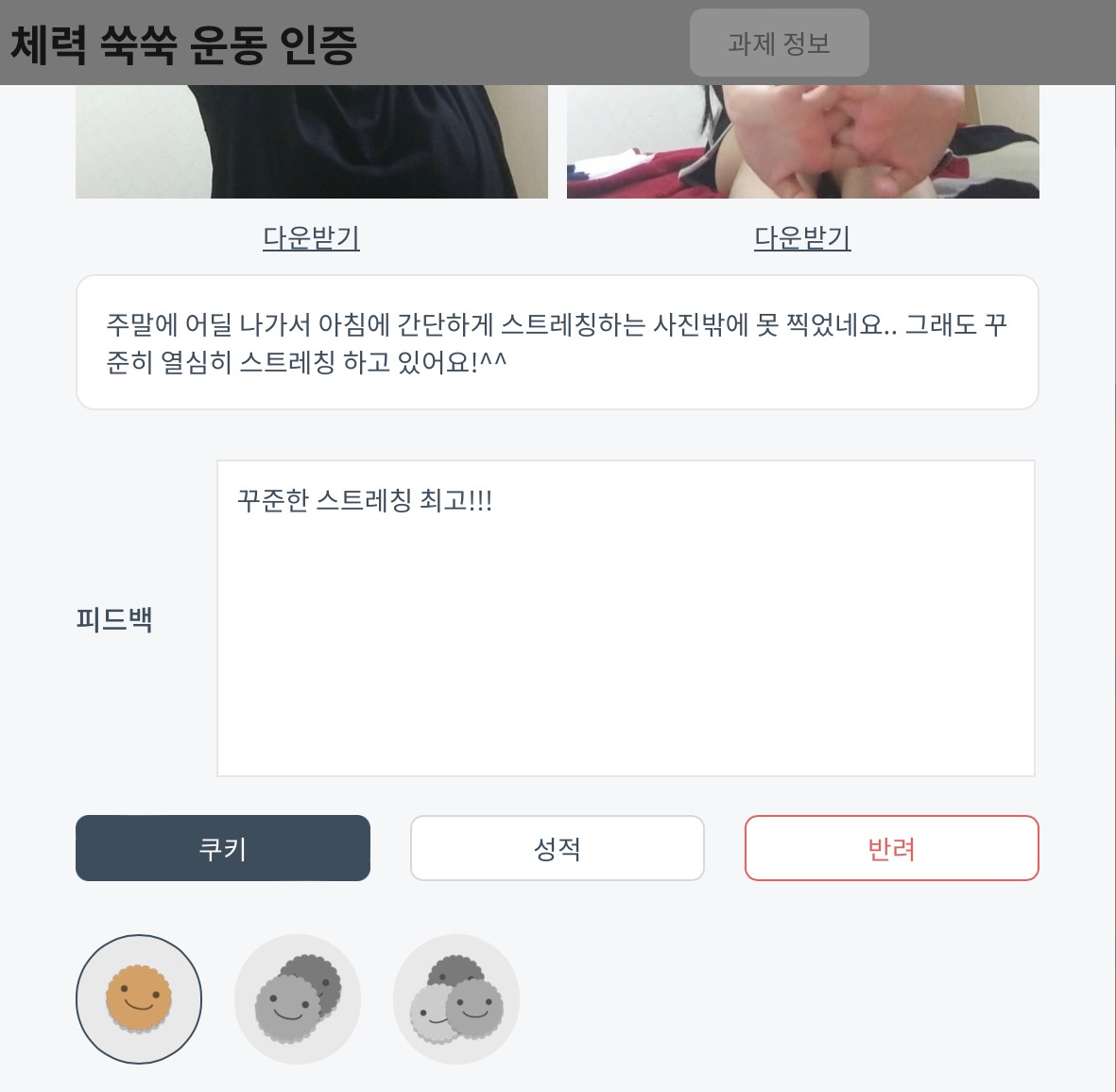 -사후 과제 / 가정에서 : 본인이 계획한 운동 수행하고, 운동 미션 사진 또는 영상 인증