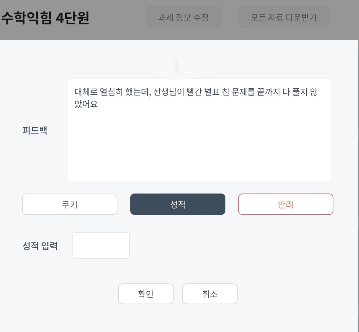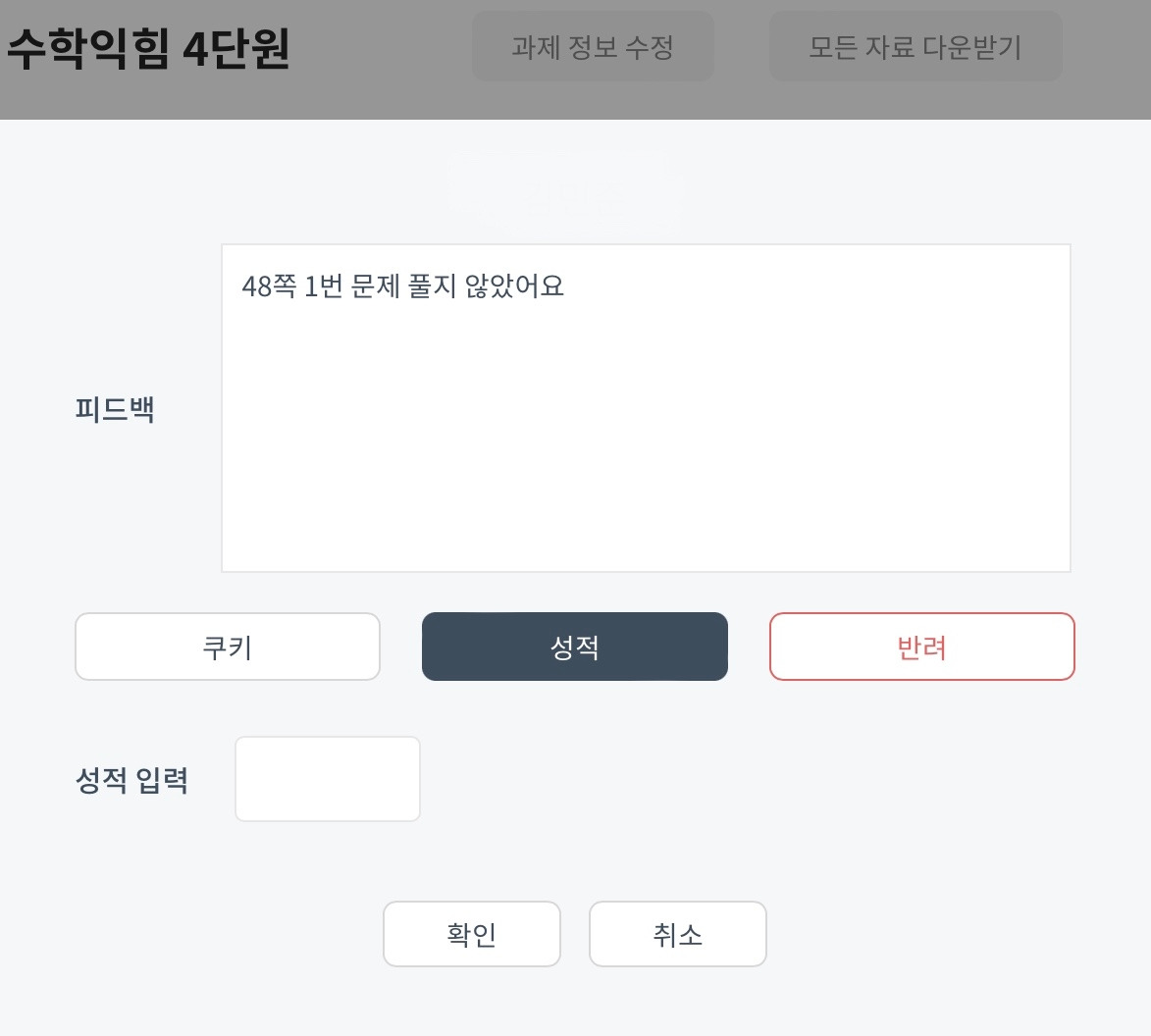 수학익힘책을 검사할 때, 다양한 방법을 사용했다.