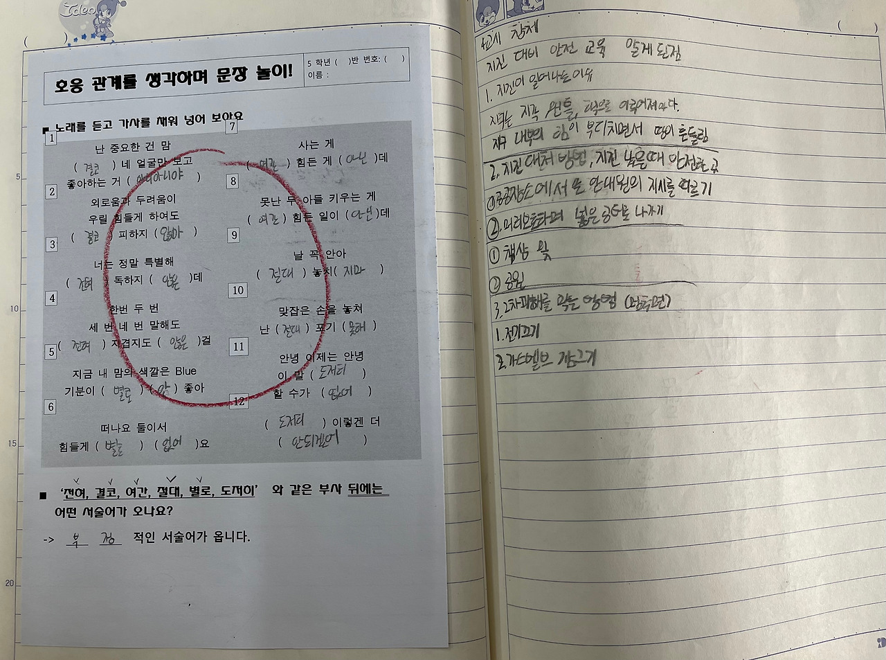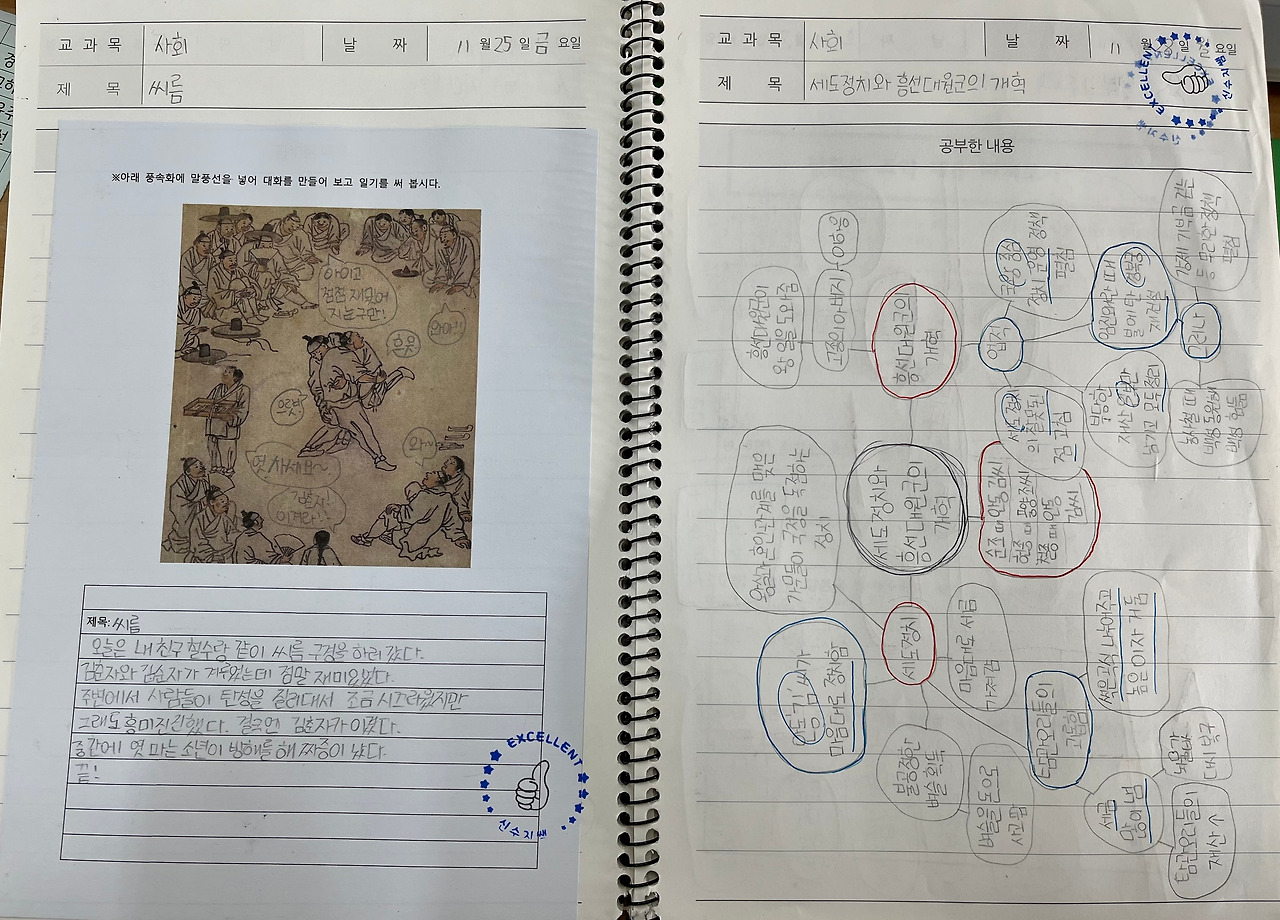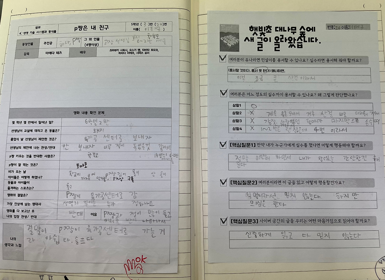 2, 3학년 담임을 맡았을 때는, 아이들이 수업 시간에 했던 학습지를 클리어 파일에 모아서 정리하도록 안내했다. 5학년 담임을 맡은 후로는, 배움 공책을 통하여 학습에 대한 기록과 정리를 할 수 있도록 지도했다.
