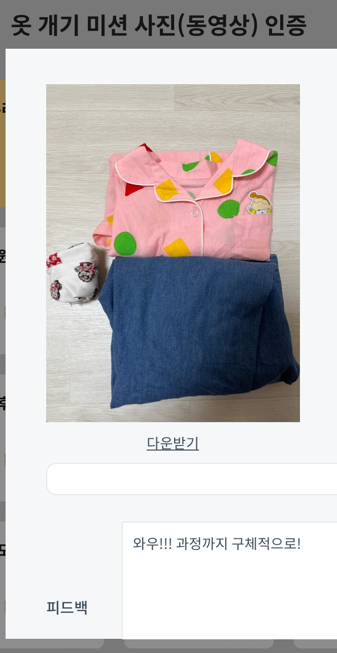 -실천 과제 / 가정에서 : 내 옷 개기 실천하고 미션 인증