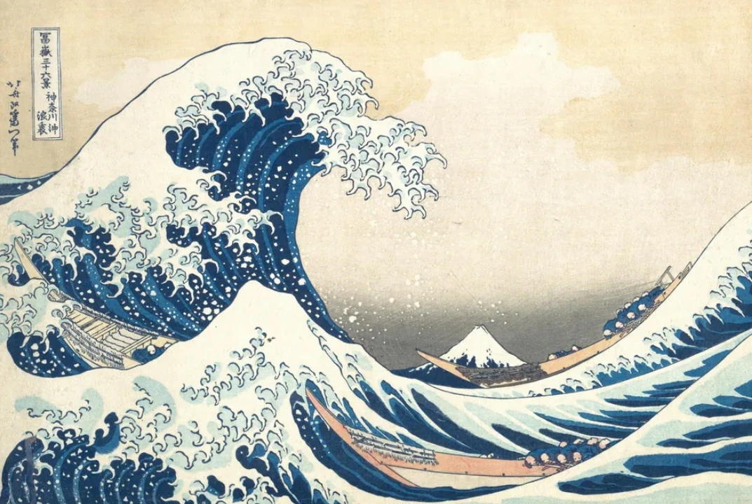 대표적인 우키요에 중 하나인 가쓰시카 호쿠사이의 '가나가와 해변의 높은 파도 아래(神奈川沖浪裏). 출처: 나무위키