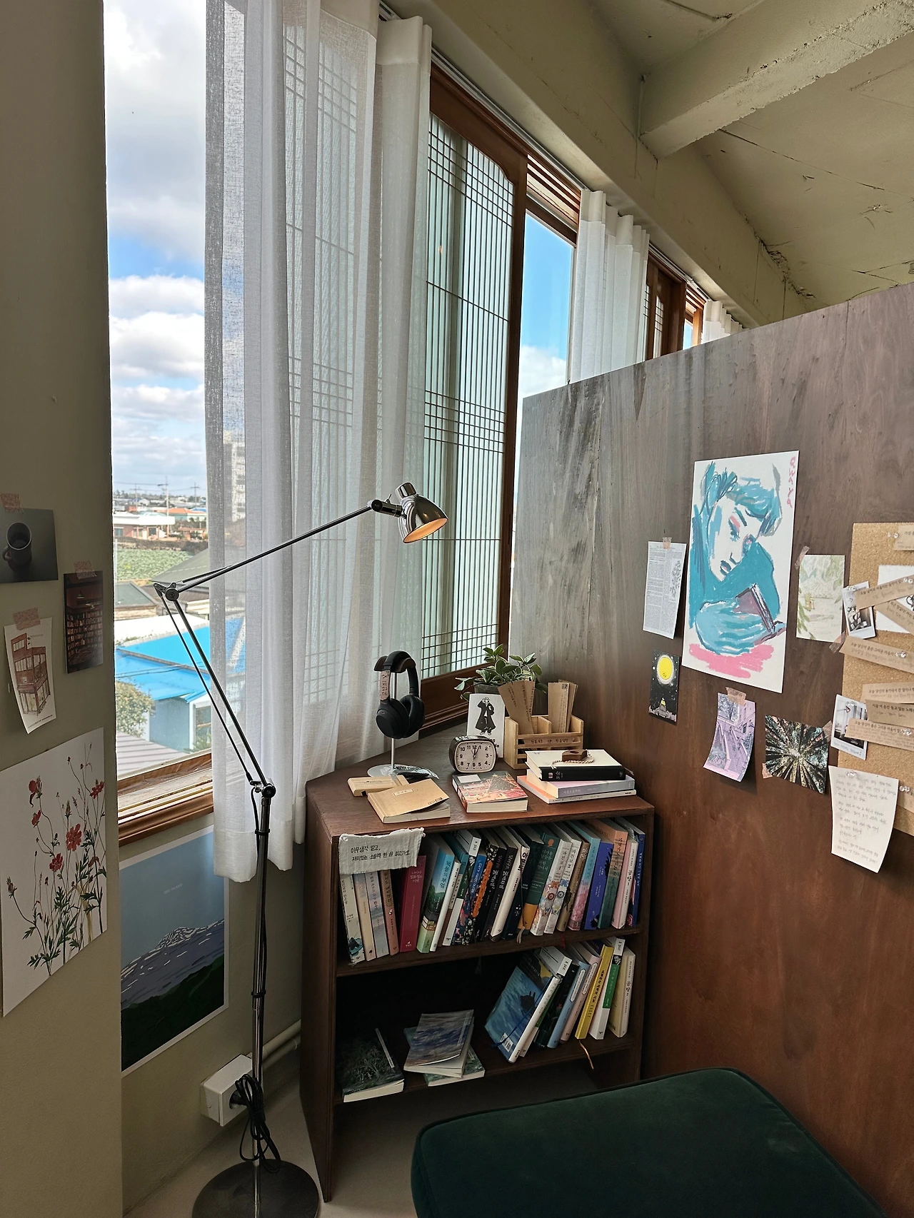 일단 시내에 있다. 전국 어디에서나 흔히 볼 수 있는 평범한 4층 건물이다. 그렇다면 이곳의 매력은 무엇일까? 2시간 혹은 3시간 동안 온전히 책에만 집중할 수 있는 공간이라는데 있다. 트레이에 담겨 나오는 커피 혹은 차와 디저트를 먹으며, 좁은 창문으로 보이는 푸르른 하늘을 배경 삼아 책에만 집중할 수 있다. 배경음악으로 틀어놓은 새소리를 들어도 좋고, 방마다 구비된 헤드폰을 끼고 세상과 잠시 단절되어도 좋다. 이곳은 제주도에 있는 그 어떤 곳보다 집중하기 좋은 곳이다. 참고로 예약제다.
