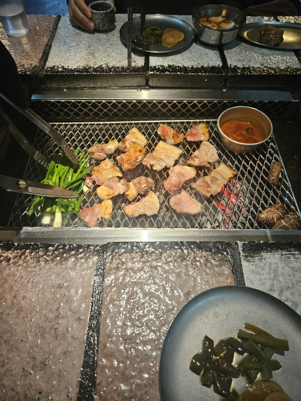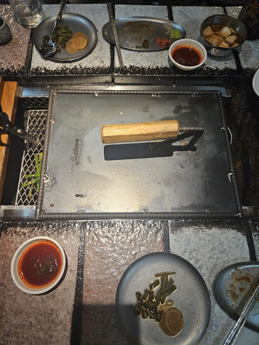 고깃집을 갈 때 가장 신경 쓰이는 게 무엇일까? 아마도 냄새이지 않을까 싶다. 새 옷을 입었을 때 고깃집을 가는 것이 꺼려지는 이유다. 물론 식욕이 이러한 걱정을 사그라들게 만들지만, 다 먹고 나면 이내 다시 생각난다. 대부분의 고깃집은 이러한 고객의 페인 포인트를 입구에 마련한 페브리즈로 해결하려 한다. 냄새를 냄새로 덮는 것이다. 미봉책이다. 산청숯불가든은 조금 더 고민을 했다. 냄새를 빨아들이는 덕트를 불판 위가 아닌 불판 옆에 둔 것이다. 연기와 냄새가 퍼질 여지를 주지 않았다. 한 끗 차이지만 엄청난 만족감을 주었다.