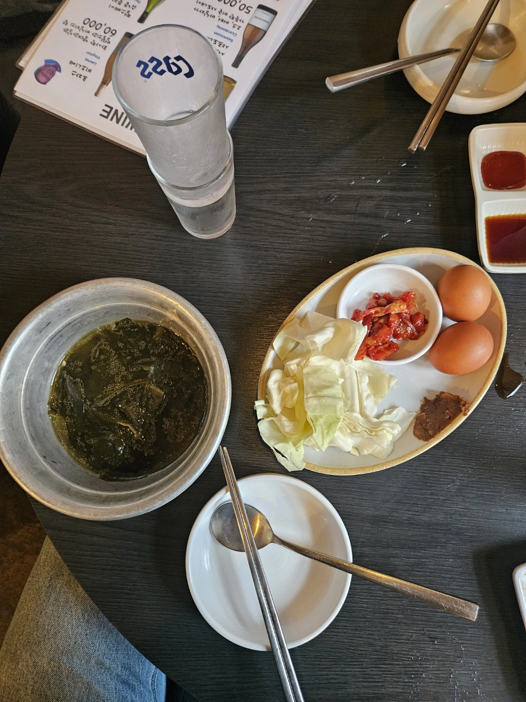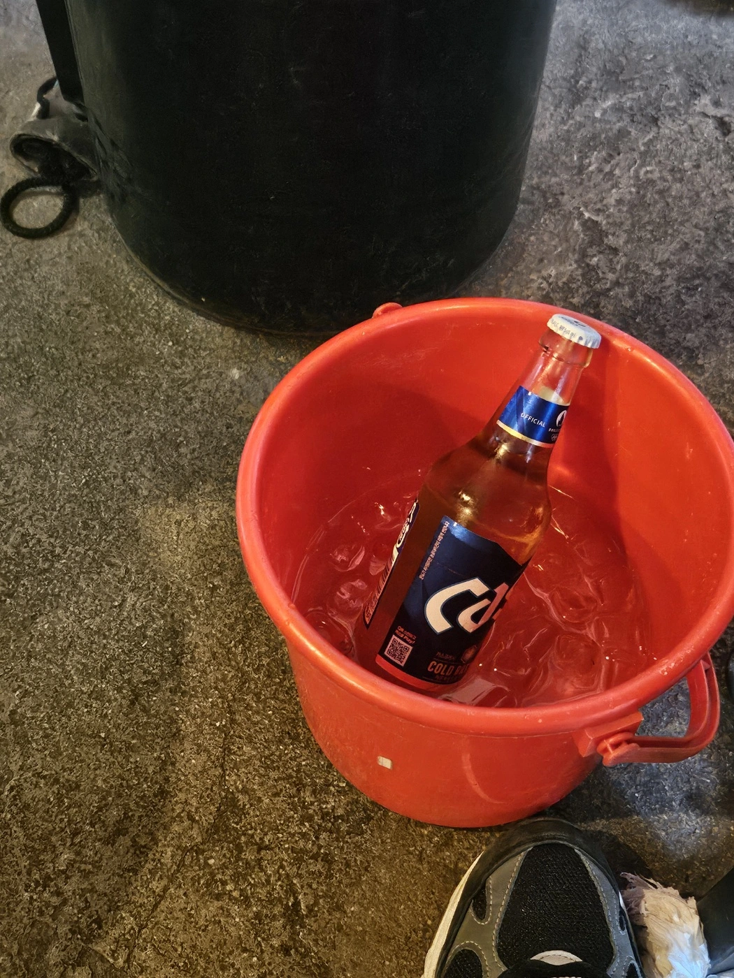 일단 음식이 맛있었다. 모든 안주가 기대 이상으로 만족스러웠다. 특별한 맛이라고 할 정도는 아니지만 누구라도 충분히 만족할 수 있는 그런 맛이었다. 이어서 소주와 맥주를 시켰는데, 얼음이 가득한 빨간 양동이(칠링 바스켓이라고 부르기에는 너무나도 양동이였다)에 담겨 제공되었다. 칠링 바스켓은 대개 스테인리스 재질이거나 반투명한 플라스틱인 경우가 많은데, 청소할 때 쓸법한 빨간 양동이는 처음이었다. 그런데 그것이 너무나도 적절했다. 가게의 분위기와, 소주와 맥주라는 서민적인 술과 너무나도 잘 어울렸다. 같은 아이템도 맥락에 따라 전혀 다르게 느껴질 수 있음을 다시 한번 체감했다.
