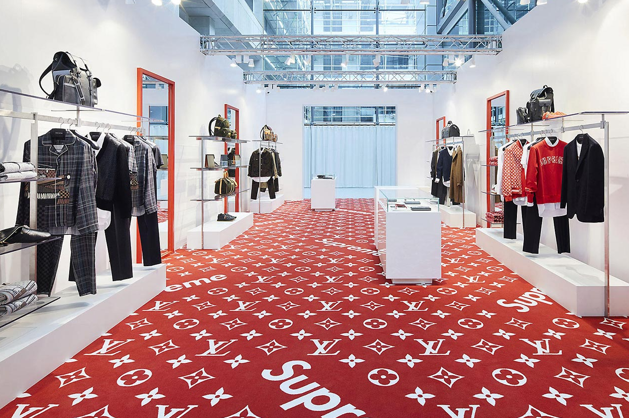 2017년 SS 루이비통, 슈프림 콜라보 컬렉션. 사진은 런던 루이비통 X 슈프림 팝업스토어