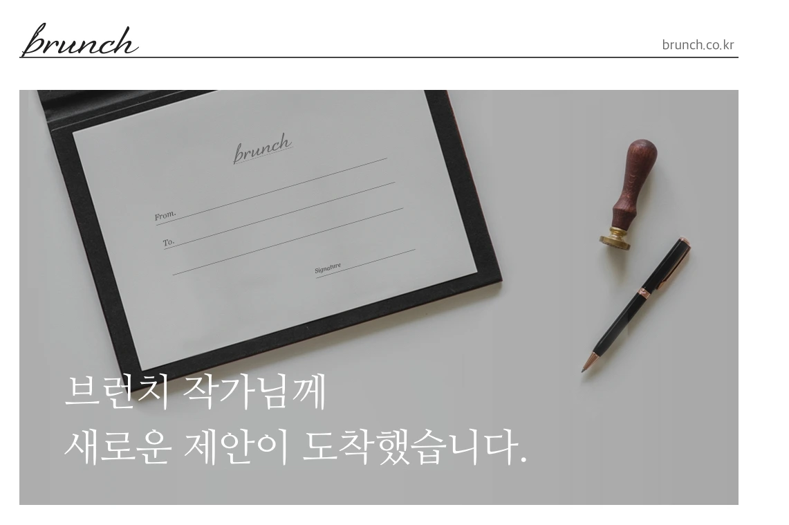 브런치를 통해 새로운 제안이 오는 경우 대개 '출판 제안' 혹은 '기고 제안'과 같은 (나한테는) 빅 이벤트이기에 설레는 마음으로 내용을 확인해봤다.