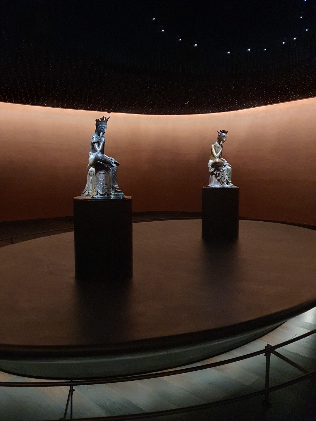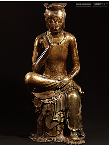 앉은 자세는 결가부좌와 반가부좌가 있다. 왼발은 지성을 의미하고, 오른발은 행위를 의미한다. 반가사유상은 오른발을 왼쪽 무릎에 올려놓은 반가좌로 되어있다. 오른발을 올려놓았다는 것은 오른발을 압박한다는 의미다. 반가사유상에서 행위(실천)보다는 지성(이론)을 강화한다는 의미를 읽어낼 수 있다. 사유상(思唯像)이라는 이름에 맞는 자세다.
