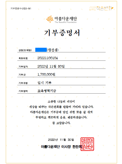 나의 경우 2022년 11월 30일 기준으로 170권의 책을 읽었고, 그래서 170만 원을 교육과 관련된 영역에 기부를 했다.