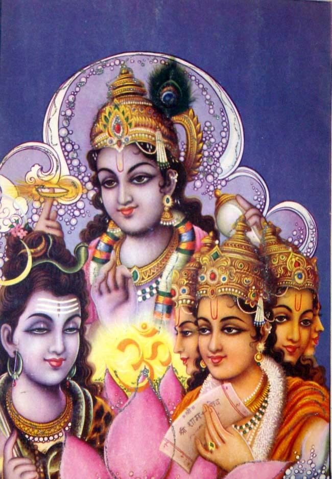 좌측: 시바/ 중간: 비슈누/ 우측: 브라흐마. 사진 출차: wikipedia