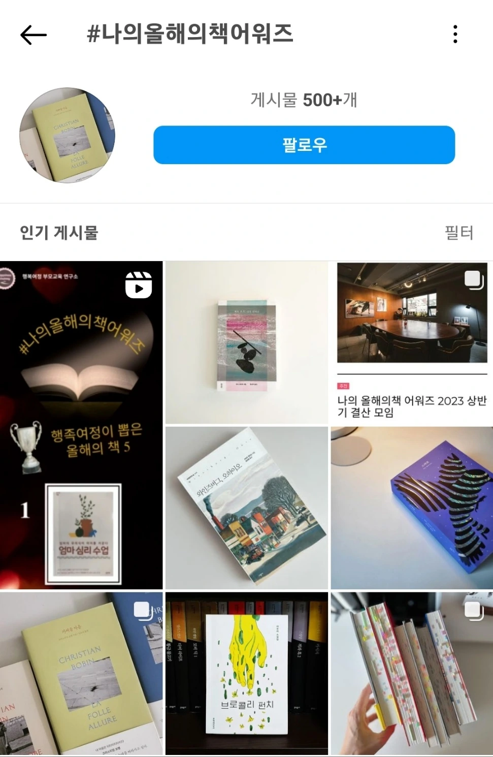 그래서 책을 좋아하는 사람이라면 누구나 한 해 동안 읽은 책 중 가장 좋았던 책을 인스타그램에서 편히 나눌 수 있는 장을 마련했다. 그것이 바로 #나의올해의책어워즈 의 시작이었다.
