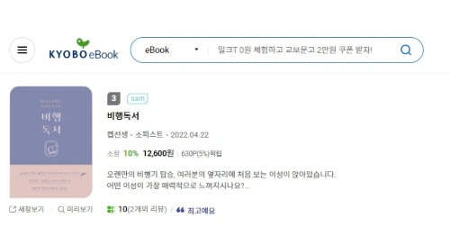 교보문고 전자책 에세이 부문 3위에 오른 첫 책 <비행독서>