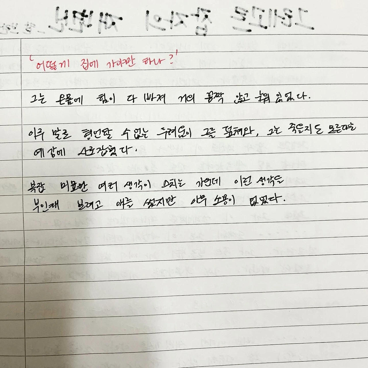’어떻게 집에 가야 하지? ‘그보다 ‘어떻게 걸어가야 하지?’ 그보다 ’어떻게 옷을 구해야 하지?‘ ’어디로 가서 도움을 요청해야 하지? ‘그런 생각들이 꼬리에 꼬리를 물었다. 그는 더 이상 참을 수 없었다.