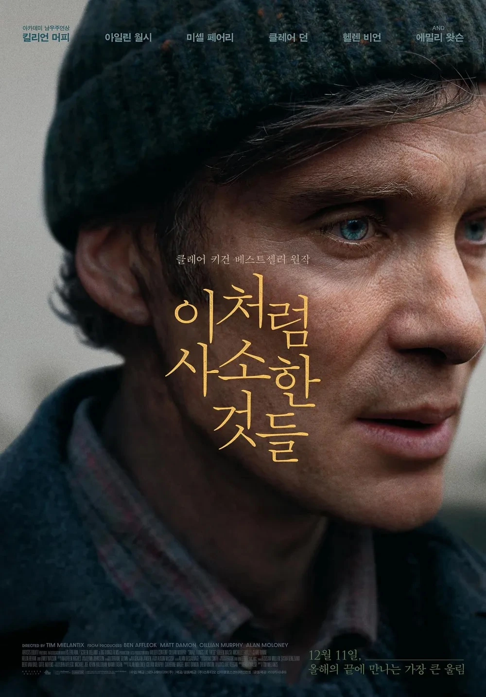 <이처럼 사소한 것들>은 그 시선을 어른의 내면으로 옮겨옵니다. 평범한 석탄 상인 '빌 펄롱'은 마을의 권력인 수녀원에서 고통받는 소녀를 목격합니다. 모르는 척 눈감으면 내 가족은 안전하지만, 그는 끝내 외면하지 못합니다. 영화의 결말에 다다를 때, ‘과연 나라면 빌처럼 모든 것을 걸고 저런 선택을 할 수 있을까?’라는 질문이 들었습니다. 그의 선택은 영웅적인 결단이라기보다, 무심히 지나칠 수도 있었을 타인의 사소한 고통 앞에서 끝내 등을 돌리지 않으려는 태도처럼 느껴졌습니다.