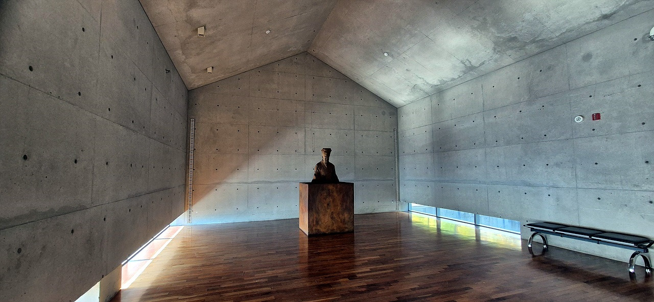 내부 계단을 통해 위쪽 공간으로 오른다. 지상과 연결된 텅 빈 공간이다. 단색의 선과 면으로 외부와 격리된 그곳에는 추사의 흉상이 있었다. 그림을 보며 상상했듯 추사 혼자, 그의 흉상 하나가 그 공간을 모두 채우고 있었다. 전시실의 많은 정보와 감상으로 무거운 머리가 그와 마주하며 맑아져 갔다.