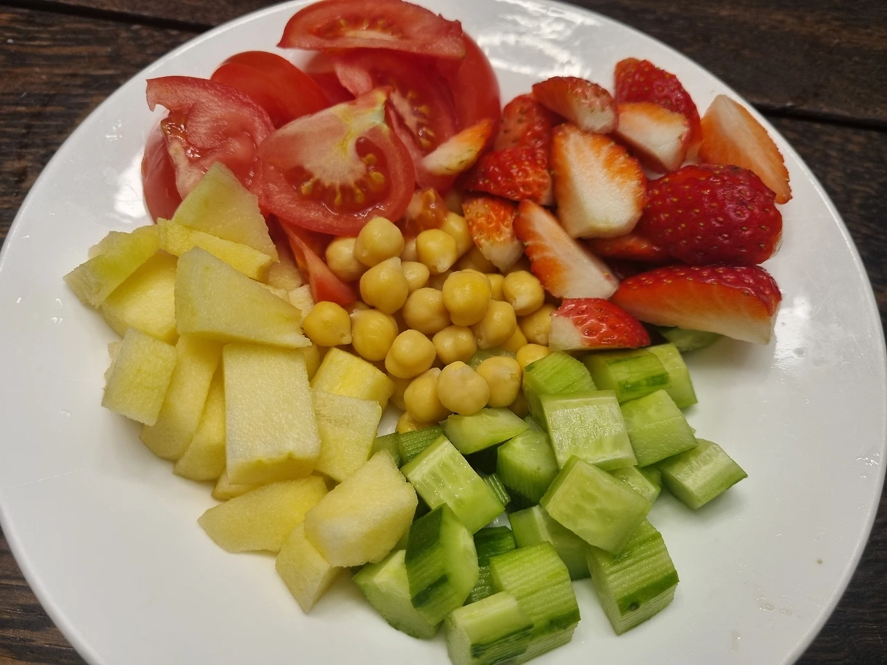 집에 있는 과일, 채소 다 넣고 샐러드도 먹다가...