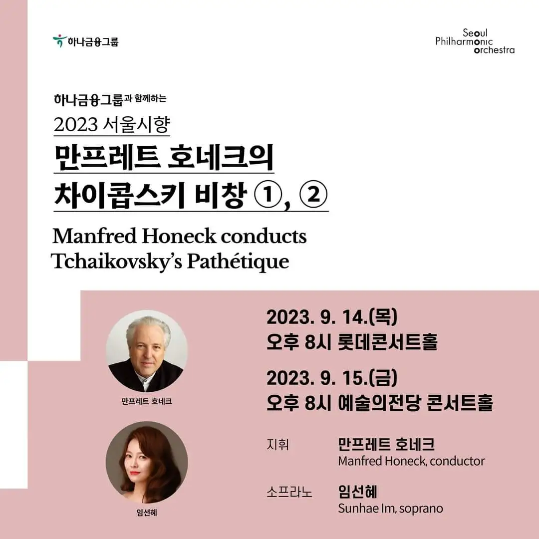 4악장이 곧바로 이어진다. <말러 교향곡 9번>의 절절한 피날레처럼, 차이콥스키의 현악은 진한 슬픔의 눈물을 아름답고 격정적으로 표현한다. 더 이상 말로 표현할 수 없는 통곡의 가장 절묘한 묘사라 할 수 있는데 한편으론 말러의 아다지오가 지닌 '통렬함'의 모태는 차이콥스키 "비창교향곡"이라 할 수 있을 것이다. 서울시향의 거대한 현악군은 처절하게 울부짖고 고요하게 종결된다. 오랜 시간의 침묵이 이어지고 객석에선 브라보와 함께 갈채가 쏟아진다. 역시 만프레트 호네크다운, 거침없고 단단한 연주였다. 그만의 독보적 감성과 공간감 속에서 음향을 한 겹 한 겹 쌓아가는 예술성의 조화가 대단히 인상적인 결과를 만들어냈다. 분명한 사실 하나가 더욱 확실하게 각인되는 순간이다. 호네크는 자신의 음악을 확고하게 표출하면서 오케스트라가 그에게 동의하도록 자연스레 호흡하는 강력한 동질감을 이끌어낸다는 사실이다. 그는 대단히 유능한 트레이너이면서 걸출한 음악성을 겸비한 진정한 천재 예술가이다.