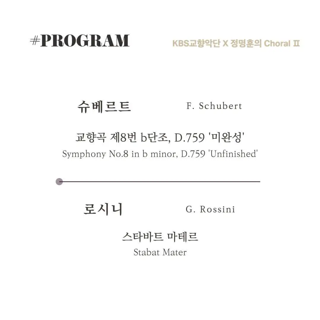 <슈베르트 미완성 교향곡>은 '잘해야 본전'인 작품인 만큼 뻔한 해석을 지양해야 한다. 오늘 연주는 제법 '느린 도입부'에 이어 단계적으로 템포 스피드를 올리는 명석한 접근법을 보여줬다. 확실히 2악장에서는 안정감 넘치는 목관군의 운용과 격렬하게 반응하는 현악을 적절히 융합한 고품격의 앙상블을 보여줬다. 감각적인 템포루바토는 로맨틱한 감성을 강조하는 느낌이다. 영적으로 끝맺는 코다는 상당히 공감되는 해석으로 다가왔다. 결국 거장의 연륜은 무시할 수 없는 것이다. 이러한 '절대명곡' 프로그램에서 확고하게 두드러지는 오랜 음악적 경험과 깊은 영감의 흔적은 그냥 발현되는 것이 아니기 때문일 것이다.