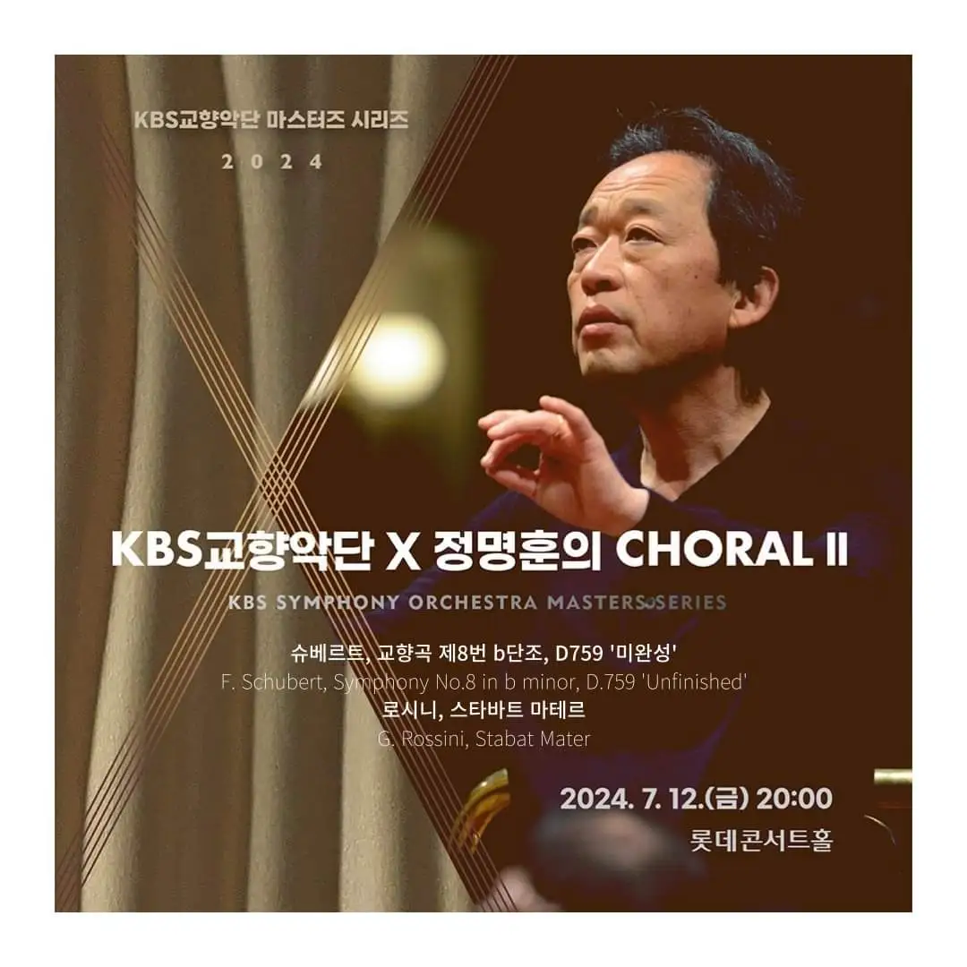 오늘의 솔리스트는 국내에서 소집할 수 있는 최상의 조합이고 작품의 권위자가 지휘하는 연주이니 기대치는 높다. KBS향은 아직 정명훈의 지휘봉에 완벽히 적응한 것처럼 보이진 않는다. 그러나 그가 정식으로 부임하면 훨씬 유려한 음색을 뽑아낼 수 있을 것이라 본다. 2곡의 테너 솔로는 김승직의 단단한 목소리 위에 밀도 높은 반주가 입혀지며 만족스러운 앙상블을 이뤘다. 대단히 아름다운 선율과 테너의 오페라적 독창이 어우러지는 핵심적인 부분으로 작품의 성패가 좌우되는 중요한 곡이라고 생각되는데 테너 김승직의 깊고 훌륭한 가창이 큰일을 해냈다. 3곡에서 소프라노 황수미와 메조소프라노 김정미의 이중창도 강렬한 인상으로 다가왔다. 서로 경쟁하듯 폭발적인 가창력이 어느 순간 소름 돋는 융합을 이루는 장면은 그야말로 압권이다. 정명훈의 오페라 반주 같은 흥미로운 서포트 역시 일품이었다. 4곡에서 사무엘 윤의 독창은 참으로 아름다웠다. 바그너 가수 특유의 중후한 무게감과 명쾌한 발성의 조화는 그만의 명성의 이유를 새삼 일깨운다. 로시니 음악이 자아내는 어여쁜 선율의 흡인력은 순간 이 곡이 <슬픔의 성모>라는 사실을 잊게 한다. 5곡은 반주 없이 순수 아카펠라로 연주된다. 독창자, 합창단이 어우러지는 목소리의 화합은 다시 강력한 종교적 색채를 띤다. 이제 반환점을 지나 6곡은 다시 로시니 특유의 음악적 형태로 회귀한다. 모든 솔리스트가 부르는 아름다운 사중창은 환희로 가득하다. 마치 진한 슬픔을 묘사하는 듯하다가 신나는 중창을 선보인다. 그들이 이루는 '네 목소리의 믹싱'이 제법 신선하다. 메조소프라노 독창인 7곡 '카바티나'는 김정미의 드라마틱하고 볼륨감 있는 목소리가 설득력 있게 다가왔다. 깔끔한 비브라토, 맑은 음성은 그녀만의 중요한 강점인 듯하다. 8곡은 소프라노, 합창의 강렬하고 격정적인 앙상블로 이뤄진다. 마치 <베르디 레퀴엠>을 연상케 하는데 물론 곡의 성향은 서로 많이 다르다. 황수미는 맑고 고운 소리이지만 적당한 무게감을 지녀 극적인 표현력이 훌륭하다. 이전에 그녀가 <리하르트 슈트라우스 "네 개의 마지막 노래">를 공연했을 때 제법 무겁게 들렸던 순간이 생각났지만 적어도 이 곡에서는 이상적으로 느껴지는 듯했다. 9곡은 5곡과 마찬가지로 합창과 독창자 아카펠라로 연주된다. 대단히 극적인 인토네이션이 공간의 울림을 압도하는데 오늘 연주도 가슴을 진동하는 긴장감과 강도 높은 장쾌함을 안겼다. 드디어 10곡 '피날레'가 전 출연진의 강력한 총주로 시작된다. 이 곡은 종교적 색채와 대중성이 겸비된 오묘한 매력이 있는데 음악적 쾌감이 거대한 카타르시스로 승화되는 깊고 파괴적인 악상을 지녔다. 1곡 도입부 선율이 다시 반복되는 순간, 곧바로 뜨거운 폭발력으로 몰아치며 코다에서 강렬한 종결을 맺는다. 정명훈 특유의 감성충만한 기승전결 과정이 완전한 파이널로 잘 구성된 느낌이다. 역시 이 작품에 있어서 탁월한 해석가인 정명훈을 온전히 증명했으니 확실히 '대가는 대가'인 모양이다.