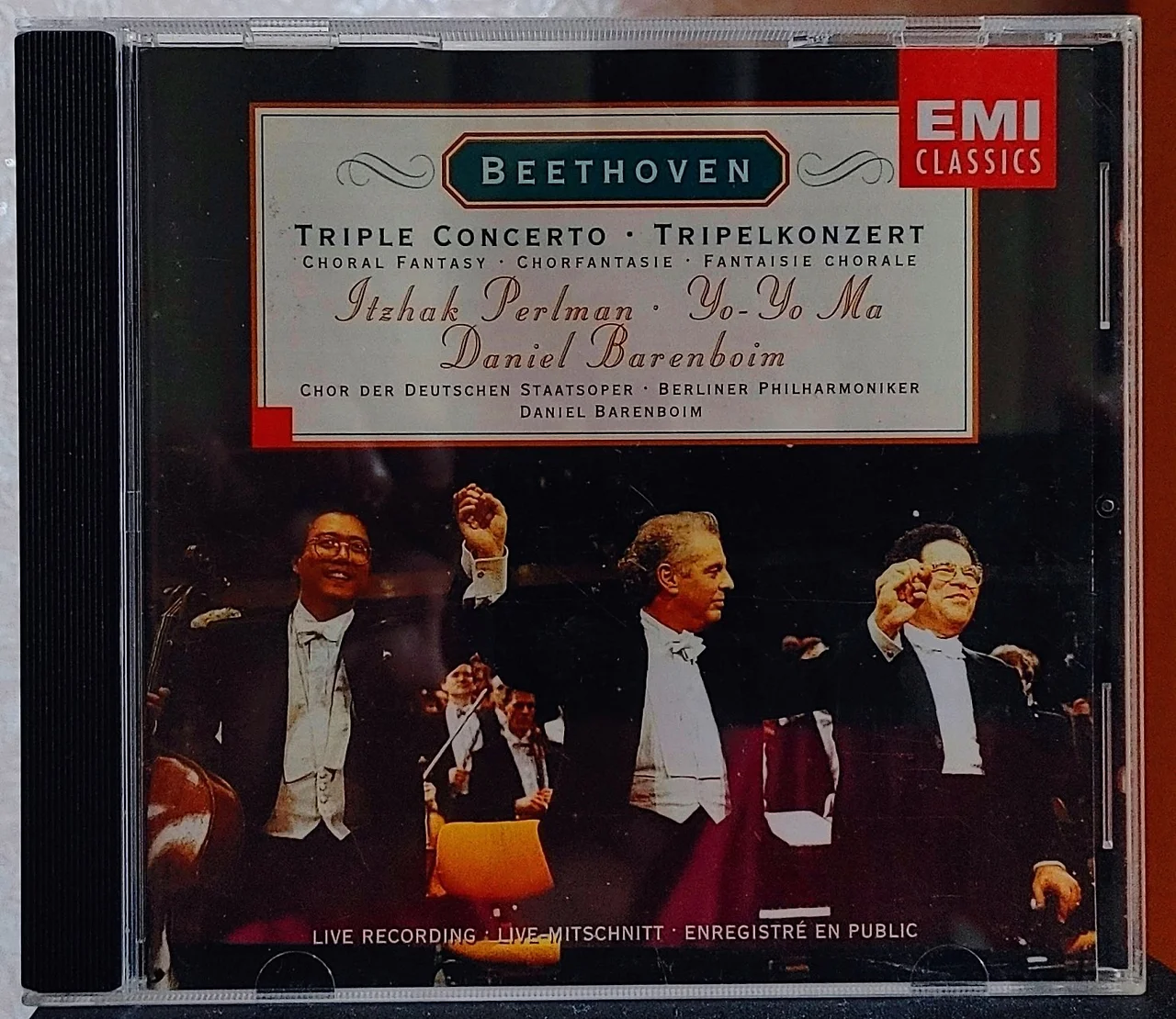 요요마, 이차크 펄먼, 다니엘 바렌보임, 그리고 베를린필하모닉 황금 콤비의 <베토벤 삼중협주곡>, <합창환상곡> 음원과 나의 첫 만남은 경이로웠다. 이들보다 훌륭한 연주와 해석을 어떻게 만날 수 있을지 감히 상상이 되지 않았기 때문이다. 이 생각은 지금도 여전히 다르지 않다. 오랜만에 듣는 이 연주는 여전히 내게 전율을 안긴다. 모든 독주자가 이토록 성의 있게 협연에 임하는 음원도 그리 흔치 않은데 요요마의 고혹적인 보잉 위에 부드럽게 얹어진 펄먼의 바이올린, 바렌보임의 달콤한 타건은 듣는 내내 극락의 세계를 펼쳐낸다. 게다가 베를린필의 탄탄한 앙상블은 그 위에 장쾌한 쾌락을 더한다. 그러니 어찌 이보다 좋은 결과를 상상할 수 있겠는가. 서로 완연히 다른 스타일이 하나의 일관된 유기체로서 융합되는 순간, 완전한 베토벤으로 승화된다. 유려하면서 강인하며, 진중하면서 생동감이 넘친다. 양극단의 지능적 공존은 첫 만남의 떨리는 순간처럼 경이롭다.
