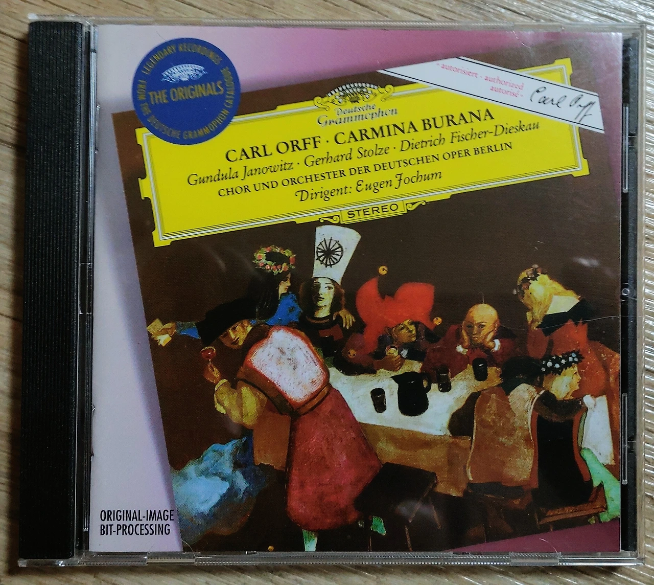 오이겐 요훔, 베를린 도이치 오퍼 오케스트라의 <카를 오르프 "카르미나 부라나">는 고금의 모든 동곡 음원들 중에서 세기의 명연으로 꼽히는 음반이다. 거장 오이겐 요훔의 두텁고 묵직한 정통 독일식 해석은 요훔 스타일의 전형을 고스란히 보여준다. 물론 현대적 세련미와 결이 다른 투박한 프레이징이나 템포가 곳곳에 존재하지만 이것은 요훔의 지휘로 모든 요소가 완벽히 통제되고 있음을 보여주는 것이다. 테너 게르하르트 스톨츠의 충격적인 기괴한 발성법은 이 음원이 지닌 가장 흥미로운 부분 중 하나다. 전설적인 바라톤 디트리히 피셔-디스카우의 등장도 놀랍다. 그는 요훔이 추구하는 독일적인 해석의 선봉에서 가장 중요한 역할을 수행한다. 무엇보다 감동적인 부분은 소프라노 군둘라 야노비츠의 천상의 목소리다. 그녀의 강하고 성스러운 음성은 가슴속에 황홀한 기억으로 각인된다. 카르미나 부라나, 이 작품은 대단히 야성적이지만 20세기의 신고전으로 정착된 곡으로 불후의 대가들이 남긴 걸출한 기록들이 지금의 우리를 기쁘게 함은 진정 축복이다. 연주는 다시 시작점으로 되돌아와 "O Fortuna (오, 운명의 여신이여)"로 강렬하게 종결된다.