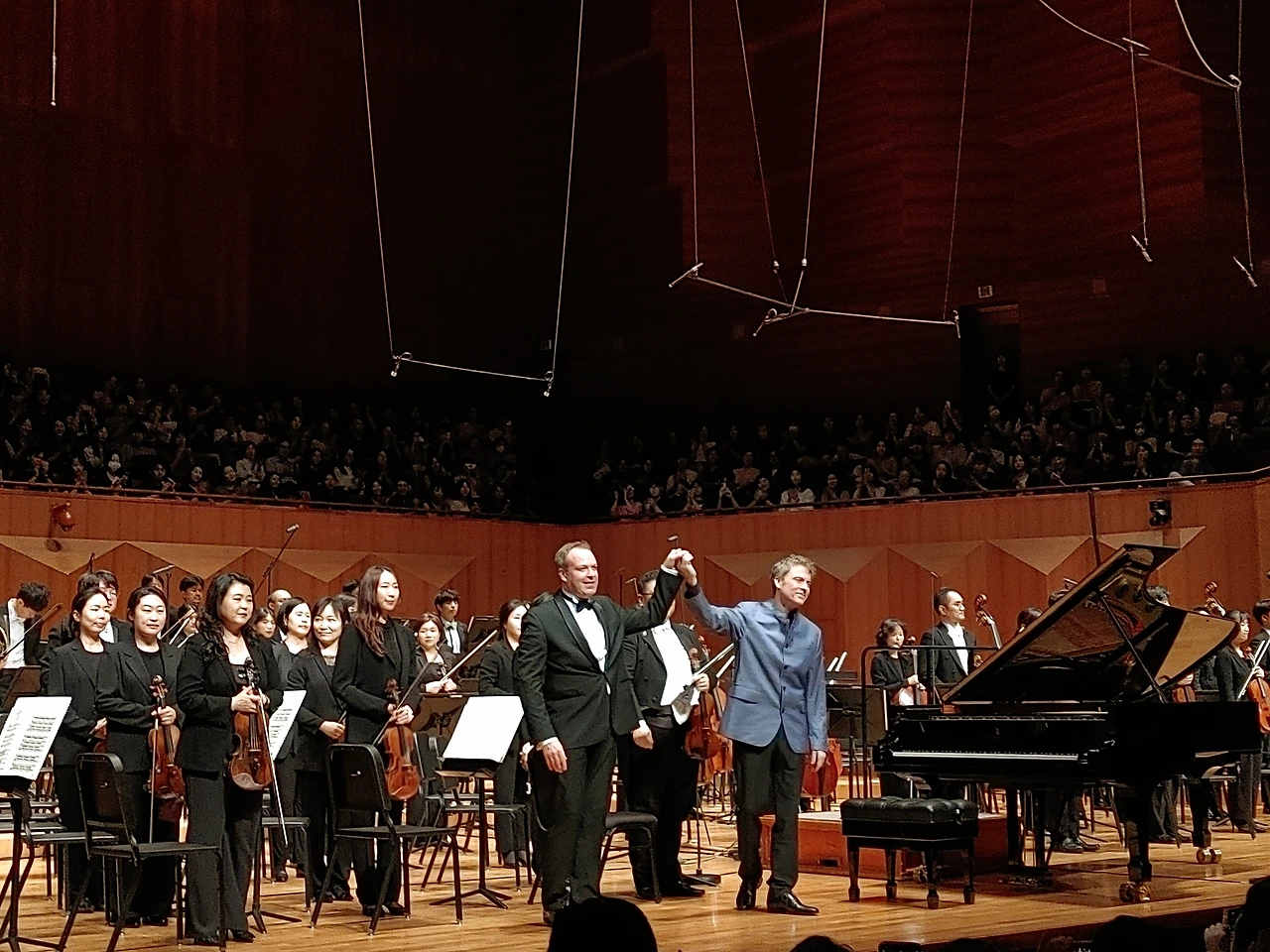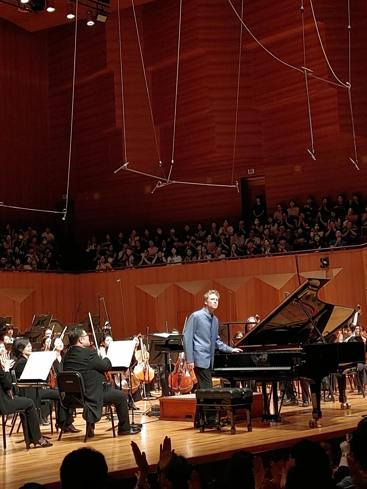 3악장은 고혹적인 관능미의 향연이었다. 그의 "베토벤 황제"는 단아하면서도 강렬했다. 실연은 물론이고, 그 어떤 음반에서도 (심지어는 그의 음원조차도) 느껴보지 못한 생동감과 섬세한 명징함이었다. 폴 루이스뿐만 아니라 오늘 라일란트와 국심의 단단하고 깔끔한 타격감은 이보다 더 훌륭한 연주가 없을 것만 같은 하모니를 이뤄내 지금 이 순간, 내가 이 공간에 존재함이 한없이 기쁘고 감격스럽게 했다. 닷새 후 그를 다시 만날 부산 공연이 이토록 두근거리며 다가오게 될 줄 진정 몰랐다. 그가 너무 좋아 어렵게 예매한 부산콘서트홀 공연은 어쩌면 오늘 이 순간보다 격한 감동의 하모니가 될 것 같아 두근거리는 마음을 가눌 길이 없다.