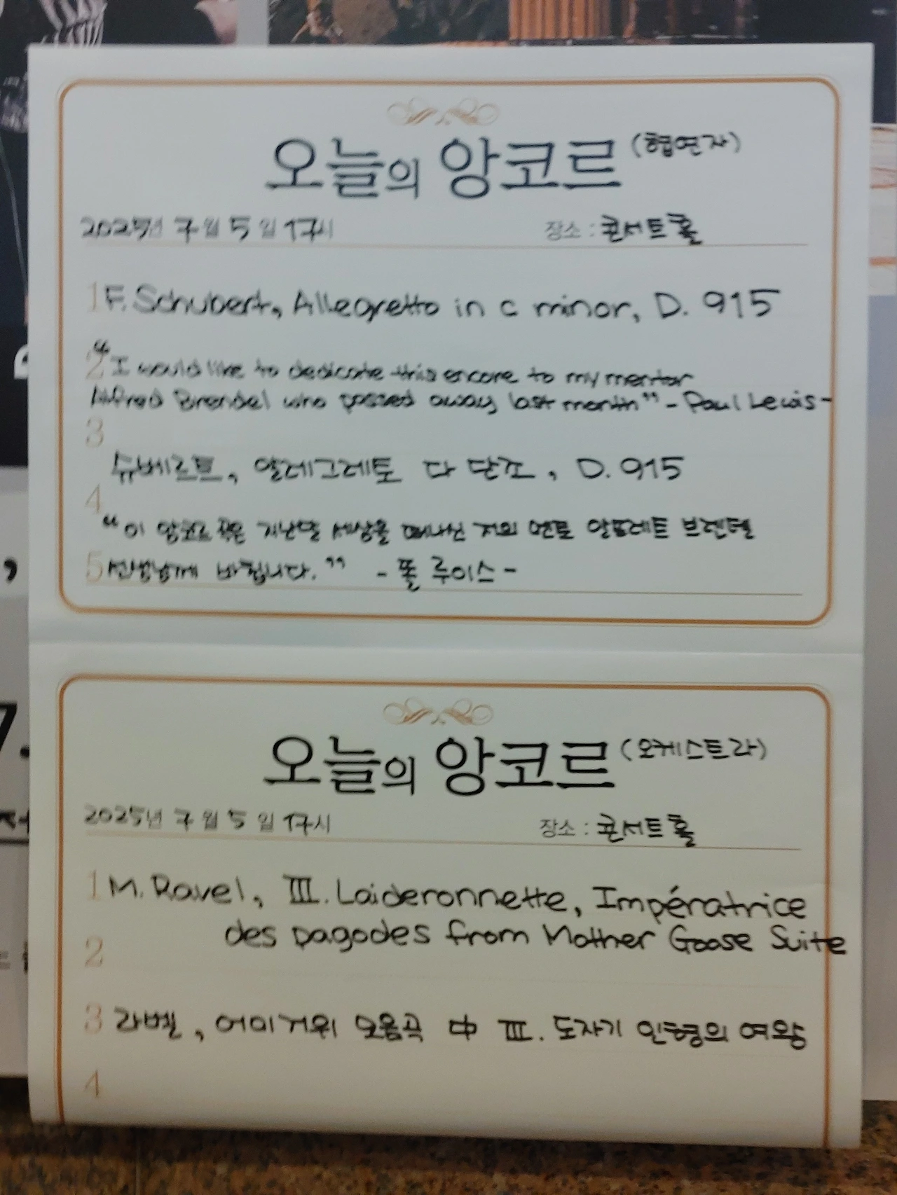 그가 수차례의 커튼콜 끝에 앙코르로 들려준 곡은 <슈베르트 알레그레토 D.915>였다. 인터미션 때 알게 됐지만 지난달에 작고한 거장 피아니스트 알프레드 브렌델을 추모하는 의미의 선곡이었는데, 그의 슈베르트는 감격스러운 선물이었고, 이후 선곡 의미를 알고 나니 숙연해지는 마음으로 연주를 더욱 깊이 음미할 수 있었다. 모든 이가 알다시피 알프레드 브렌델은 폴 루이스의 스승이자 멘토였던 대 연주자이다.