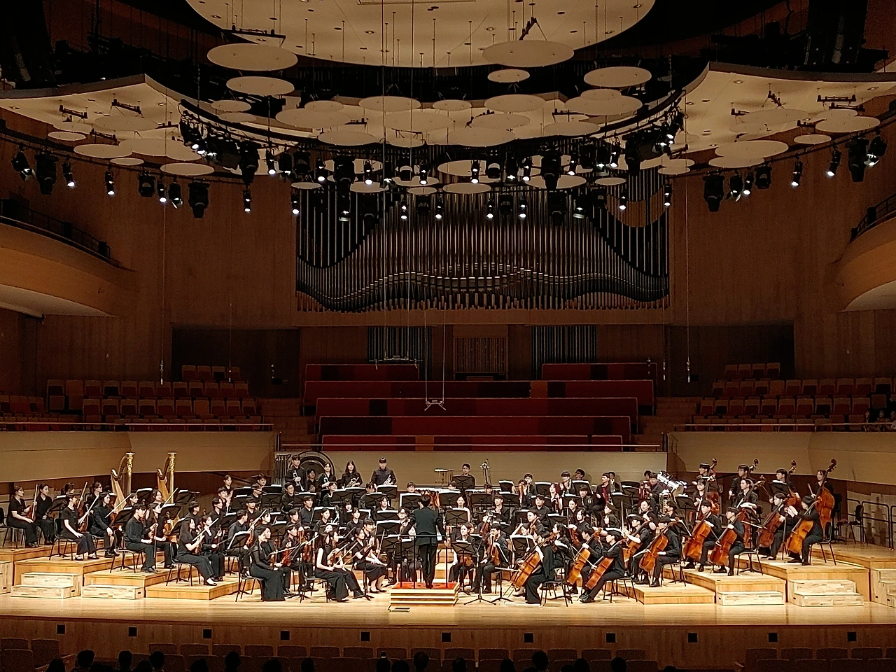 1악장 금관 파트의 극악의 난이도는 기성 프로 악단도 온전히 소화하기 어렵다. 특히 호른의 살인적인 악상은 관객들조차도 긴장하게 만들 만큼 연주자에게 고난도의 테크닉을 요구하는데 보다 연습량이 많았다면 젊은 학생 단원임에도 훨씬 훌륭하게 연주했을 것을 믿어 의심치 않으나 오늘 연주는 많이 불안했던 게 사실이다. 그러나 현과 목관군의 합주력은 대단히 인상적인 순간들이 많았고 안정된 기량으로 흔들림 없는 흐름을 보였다. 특히 4악장은 지휘자의 범상치 않은 비팅과 현악군의 활약이 무척 돋보였다. 전반 악장은 악보 자체에 충실하려는 방향성이 강했던 반면, 피날레는 지휘자 이승혁의 감성적, 낭만적 해석이 적극적이고 강렬하게 투영된 연주였다. 서서히 고요하게 죽음, 그 이후의 순간으로 향하는 코다의 농밀하고 압도적인 여운은 기대 이상의 뜨거운 감동을 안겼다. 최후의 종지음이 사라지고 지휘봉이 멈추자 깊은 침묵 속으로 빠져들었다. 객석의 관객들 모두는 이 아름답고 숨 막히는 정적의 순간을 오롯이 지켜주며 최고의 침묵악장을 만들어주었다.