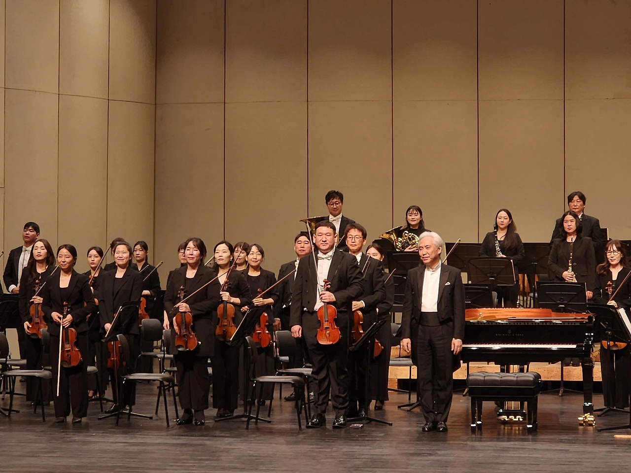 김대진 지휘자의 등장은 그 자체로 큰 이슈였다. 그가 무대에 들어서자 여기저기에서 환호성이 들린다. 마치 유명 연예인, 가수가 온 듯한 느낌이다. 오늘 공연은 그의 지휘뿐만 아니라 피아노 협연도 직접 목격할 수 있는 흔치 않은 기회라 더더욱 기대가 컸다. 그가 수원시향과 창원시향 음악감독 시절 무대 이후 참으로 오랜만의 만남이다. 더 과거로 거슬러 올라가면 드미트리 키타옌코, KBS교향악단과 모차르트를 협연하던 옛 기억까지 이르게 된다.