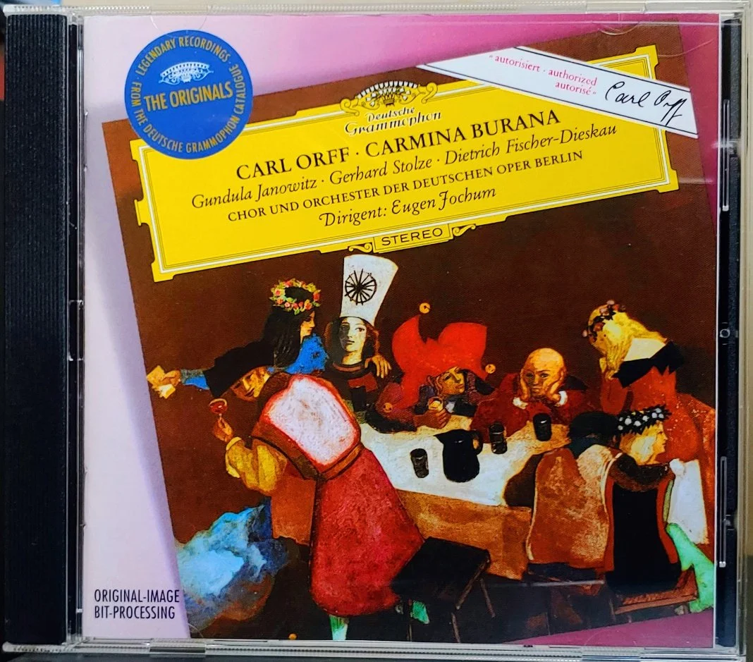 오이겐 요훔, 베를린 도이치 오페라 오케스트라의 <카를 오르프 카르미나 부라나>는 고금의 모든 동곡 음원들 중 세기의 명연으로 꼽히는 음반이다. 거장 오이겐 요훔의 두텁고 묵직한 독일 정통 해석은 요훔 스타일의 전형을 고스란히 보여준다. 물론 현대적인 세련미와 결이 다른 투박한 프레이징이나 템포가 곳곳에 존재하지만 이것은 요훔의 지휘 아래 모든 요소가 완벽히 통제되고 있음을 보여주는 것이다. 테너 게르하르트 스톨츠의 충격적인 기괴한 발성법은 이 음원이 지닌 가장 흥미로운 부분 중 하나이다. 전설적인 바라톤 디트리히 피셔-디스카우의 등장도 놀랍다. 그는 요훔이 추구하는 독일적인 해석의 선봉에서 가장 중요한 역할을 수행한다. 무엇보다 나를 감동시키는 부분은 소프라노 군둘라 야노비츠의 천상의 목소리이다. 그녀의 강렬하고 성스러운 음성은 가슴속에 황홀한 기억으로 각인된다. "카르미나 부라나"는 대단히 야성적인 작품이지만 20세기의 고전으로 정착된 곡으로 불후의 대가들이 남긴 걸출한 기록들이 지금의 우리들을 기쁘게 함은 진정한 축복이다. 연주는 다시 시작점으로 되돌아와 "O Fortuna (오, 운명의 여신이여)"로 강렬하게 종결된다. 오이겐 요훔만의 독보적인 해석과 카리스마, 세기의 성악가들, 그리고 베를린 도이치 오페라 합창단, 오케스트라의 저돌적인 앙상블은 연주가 마무리 되어도 그 여운에서 오래도록 빠져나오기 힘들게 만든다. 실로 장대한 대서사시이며 모두의 필청반이다.