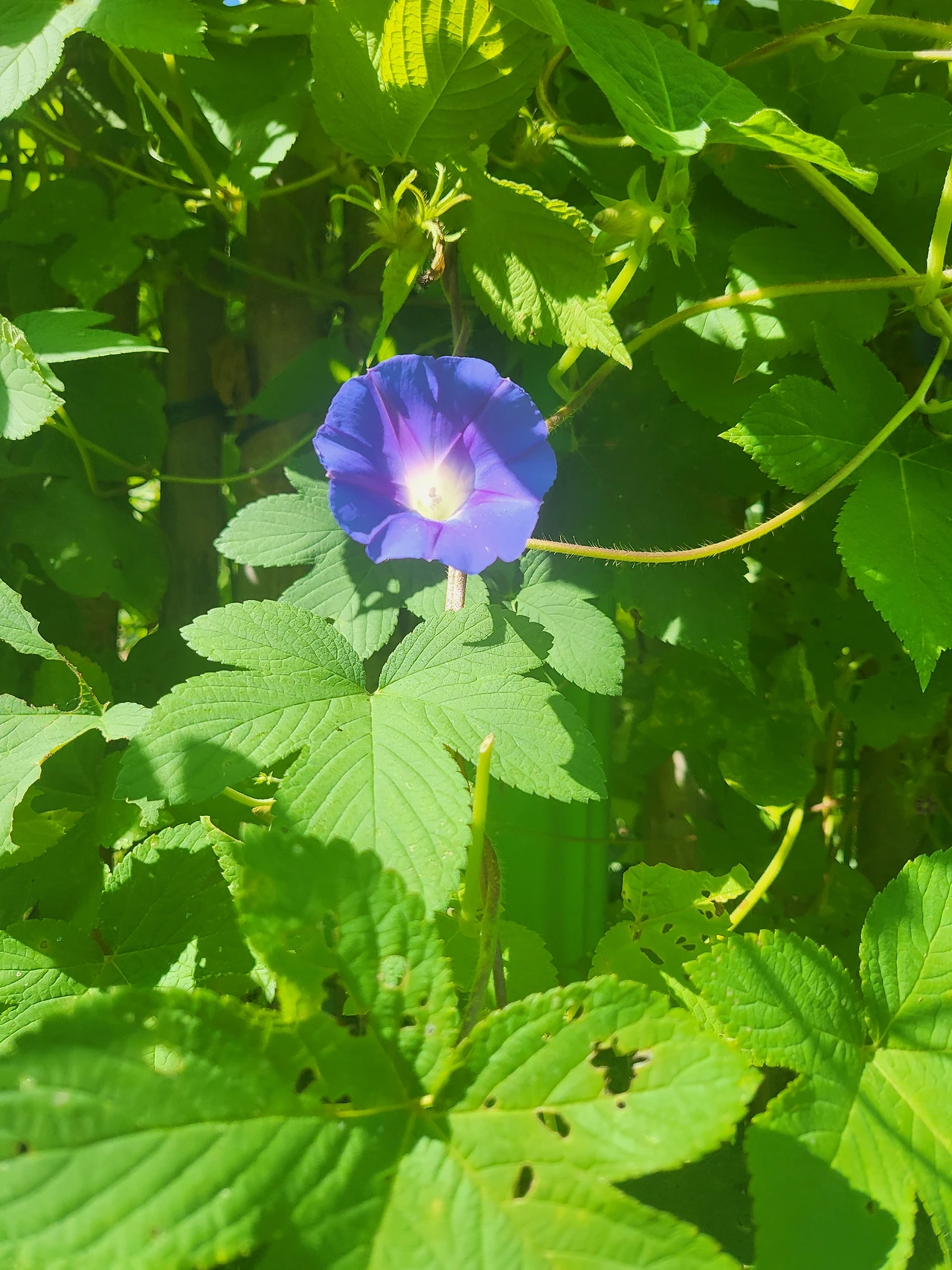 꽃 한 송이가 담벼락에 피었다.