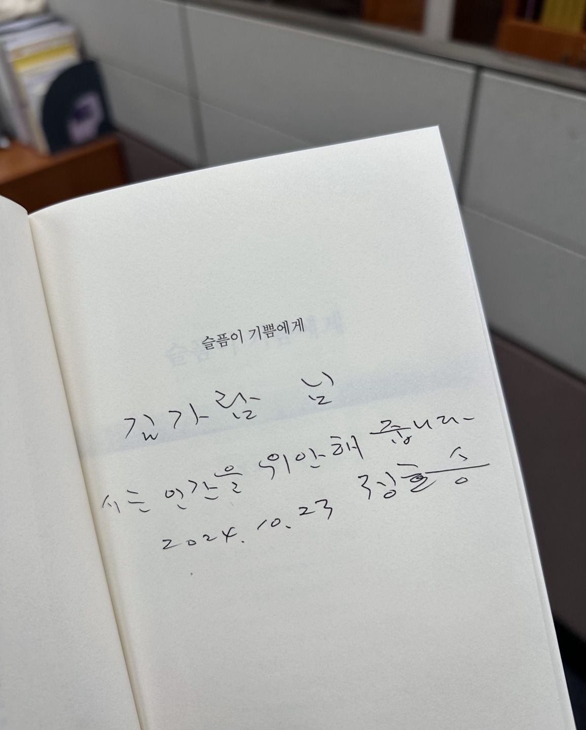 시집에 사인을 해 달라는 나의 요청에, 따뜻한 미소를 지으며 볼펜을 꺼내는 시인의 모습을 기억한다. 당신의 강의가 끝나자마자, 그저 강의 보조일 뿐이었던 내게 가장 먼저 고개 숙여 고맙다고 인사해준 그 순간도.