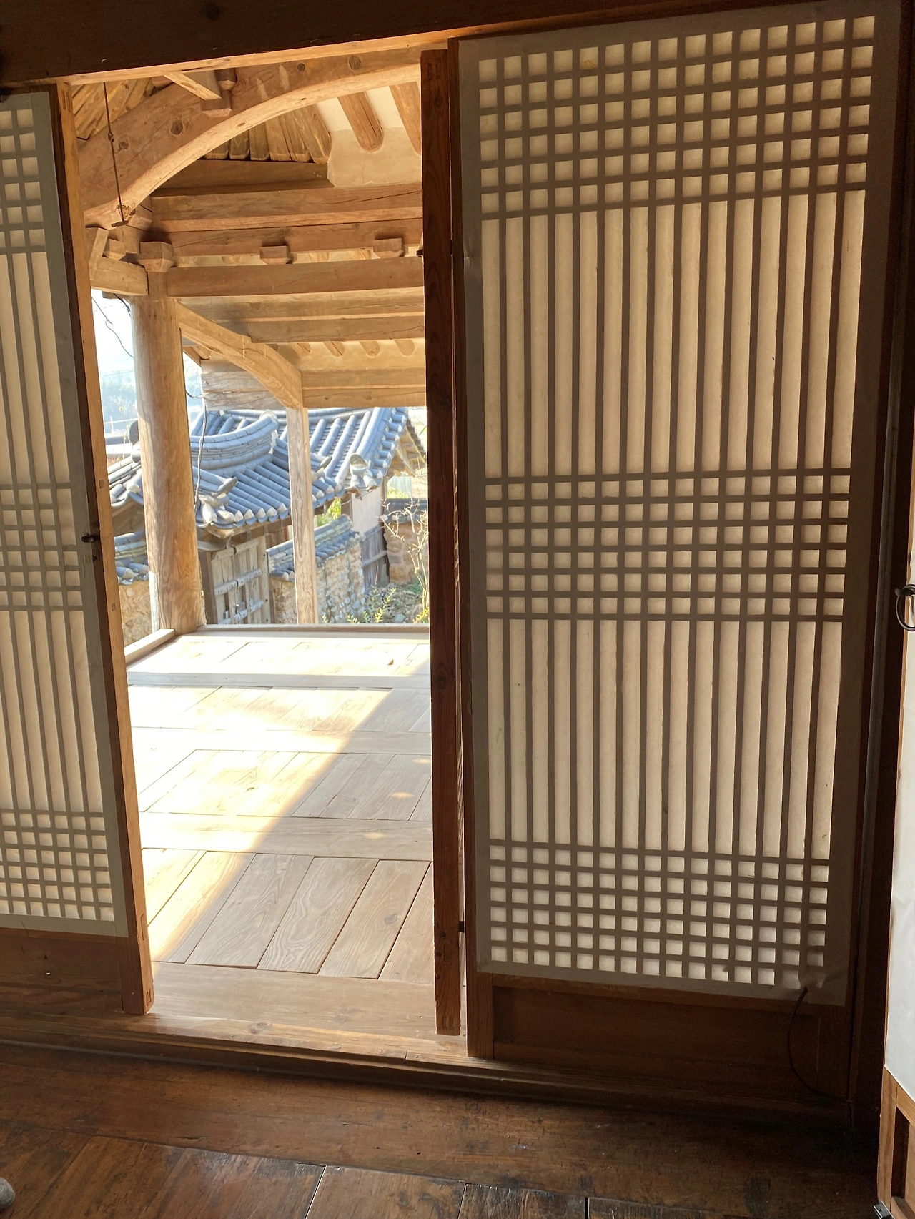 오른쪽 기존 대청마루와 새로 만든 누마루를 툇마루로 연결함으로써 건물의 모든 방과 마루가 하나의 동선으로 연결됐다. 덧달아낸 가적 지붕으로 전면 공간이 넓어지니 정원과 외부 경관을 한층 여유롭게 즐기수 있다.